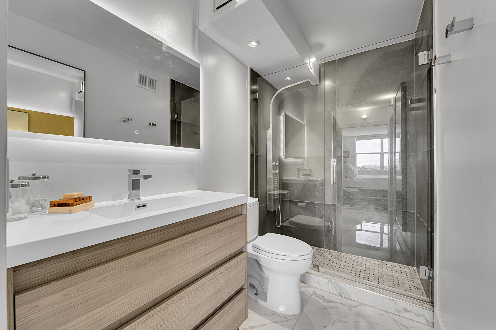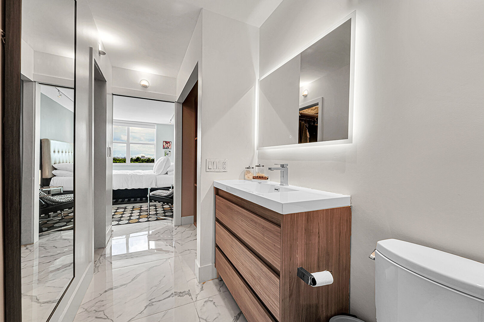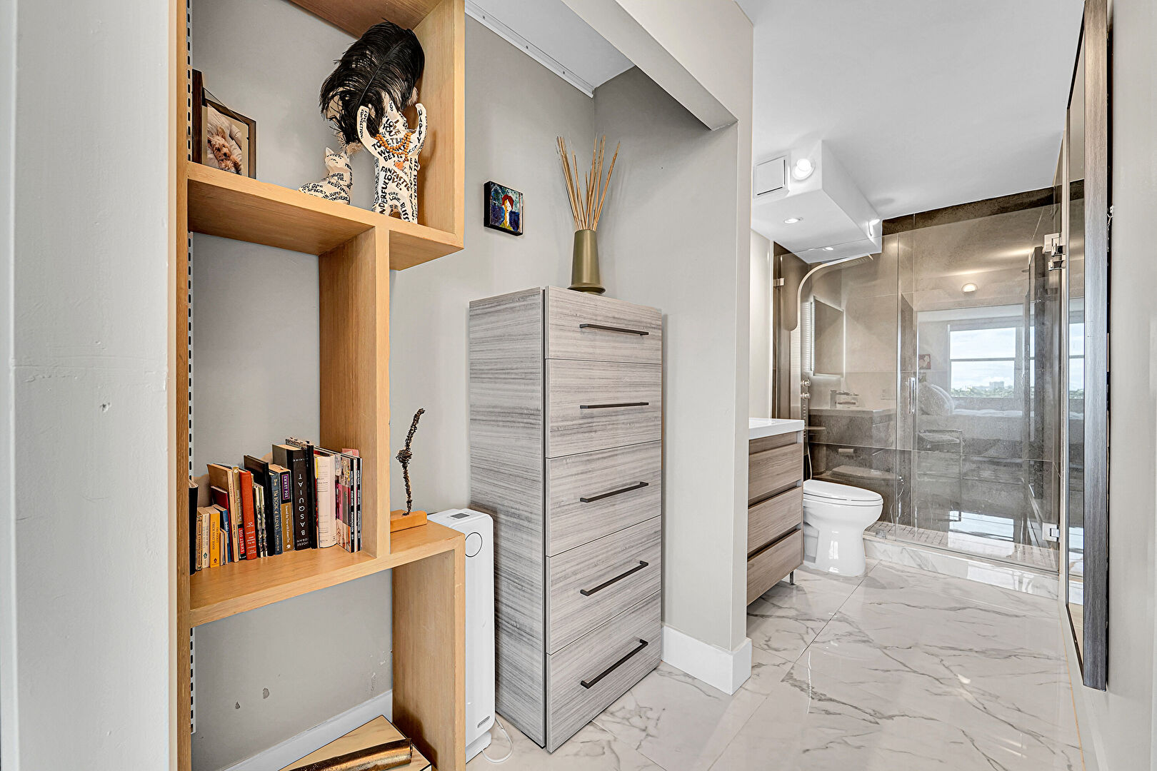 Baseboards Wall, Closet, Drywall, Ensuite Bathroom, Full Bathroom, Marble Finish Floor, Natural Light, Vanity, Baseboards Wall, Full Bathroom
