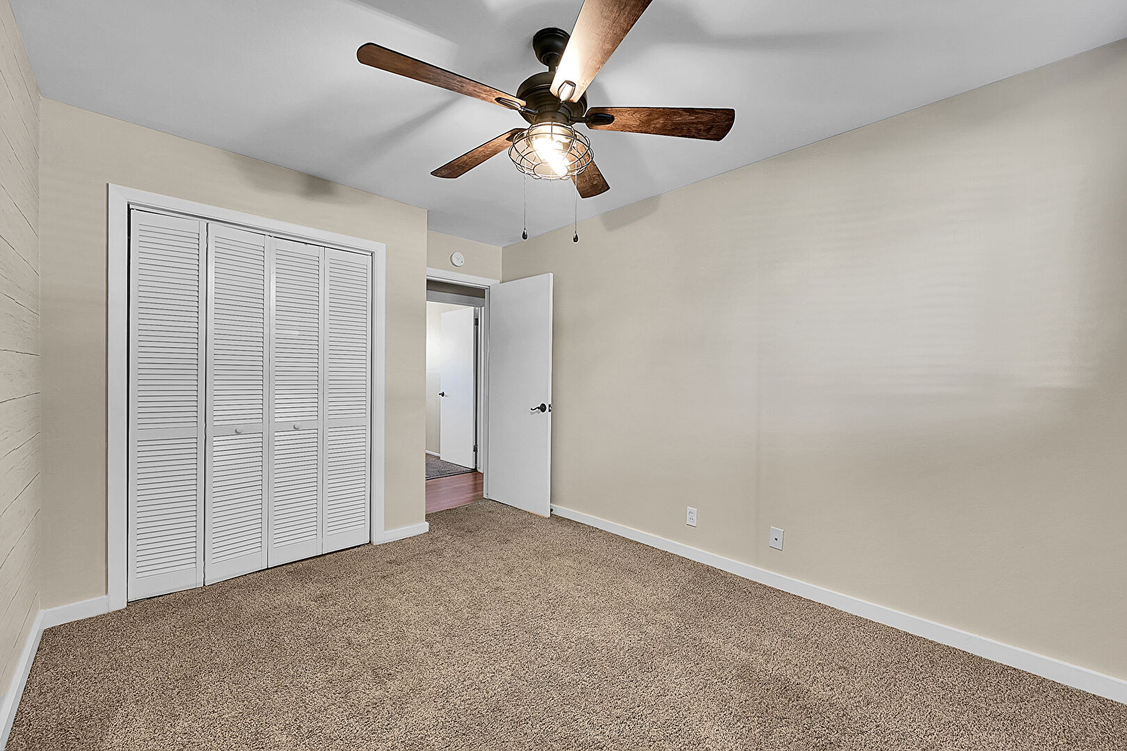 Baseboards Wall, Carpet, Ceiling Fan, Closet, Drywall, Natural Light, Wood Wall, Ceiling Fan, Vent