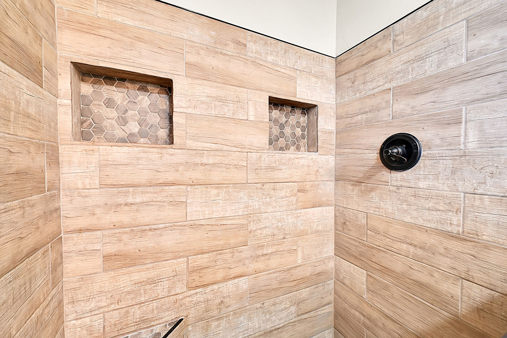 Full Bathroom, Textured Wall, Combined Bath Shower