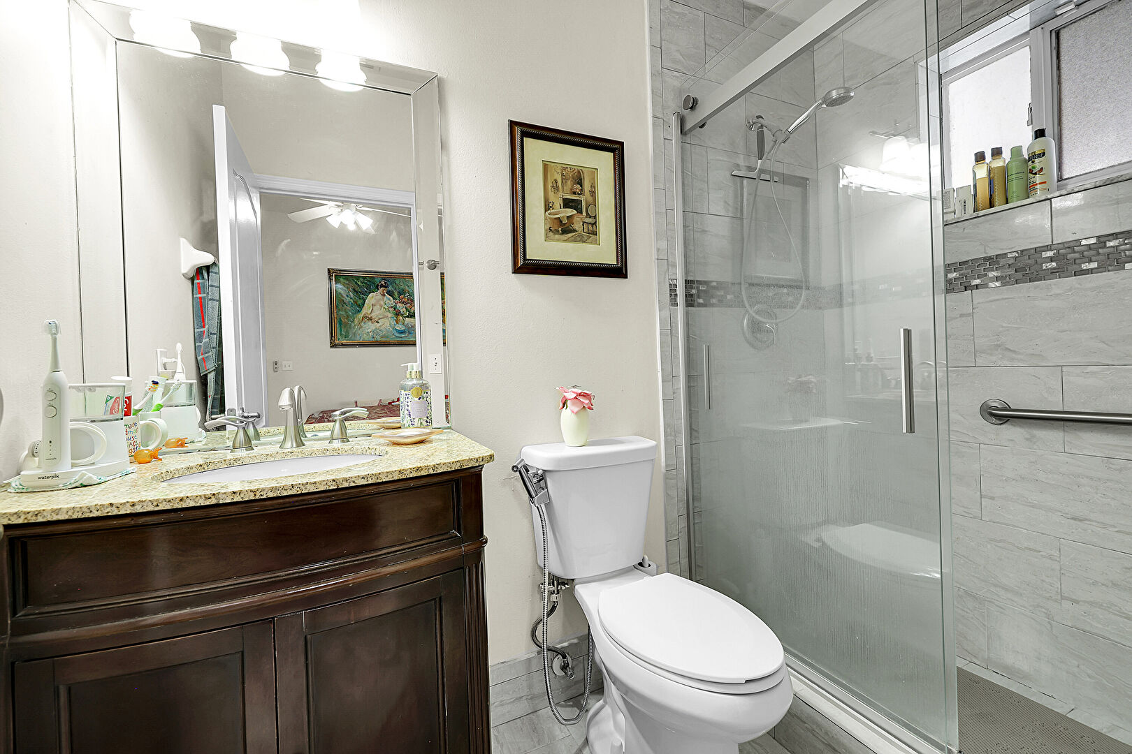 Ceiling Fan, Drywall, Full Bathroom, Natural Light, Vanity, Drywall, Vanity