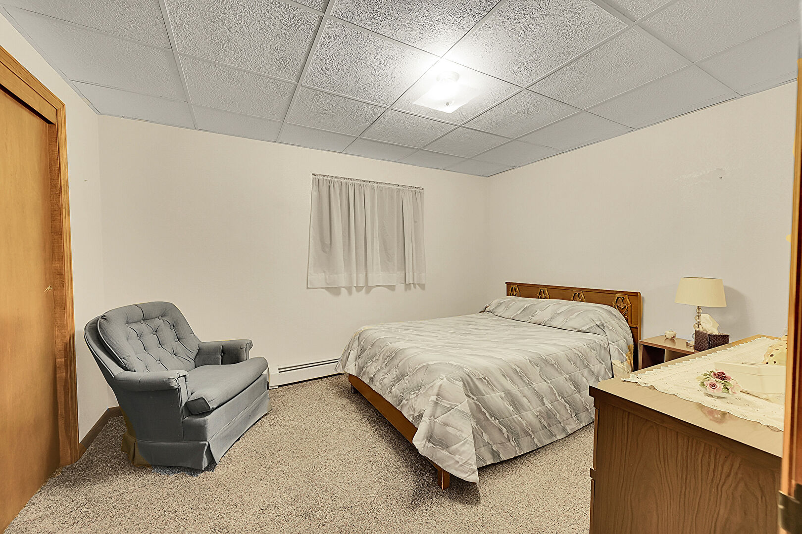 Baseboard Radiator, Baseboards Wall, Carpet, Closet, Drop Ceiling, Drywall, Baseboard Radiator, Closet