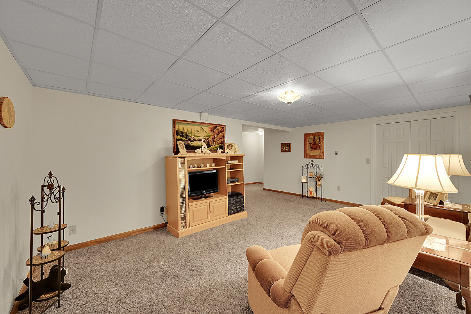 Baseboards Wall, Basement, Carpet, Drop Ceiling, Drywall, Drop Ceiling, Drywall, Vent