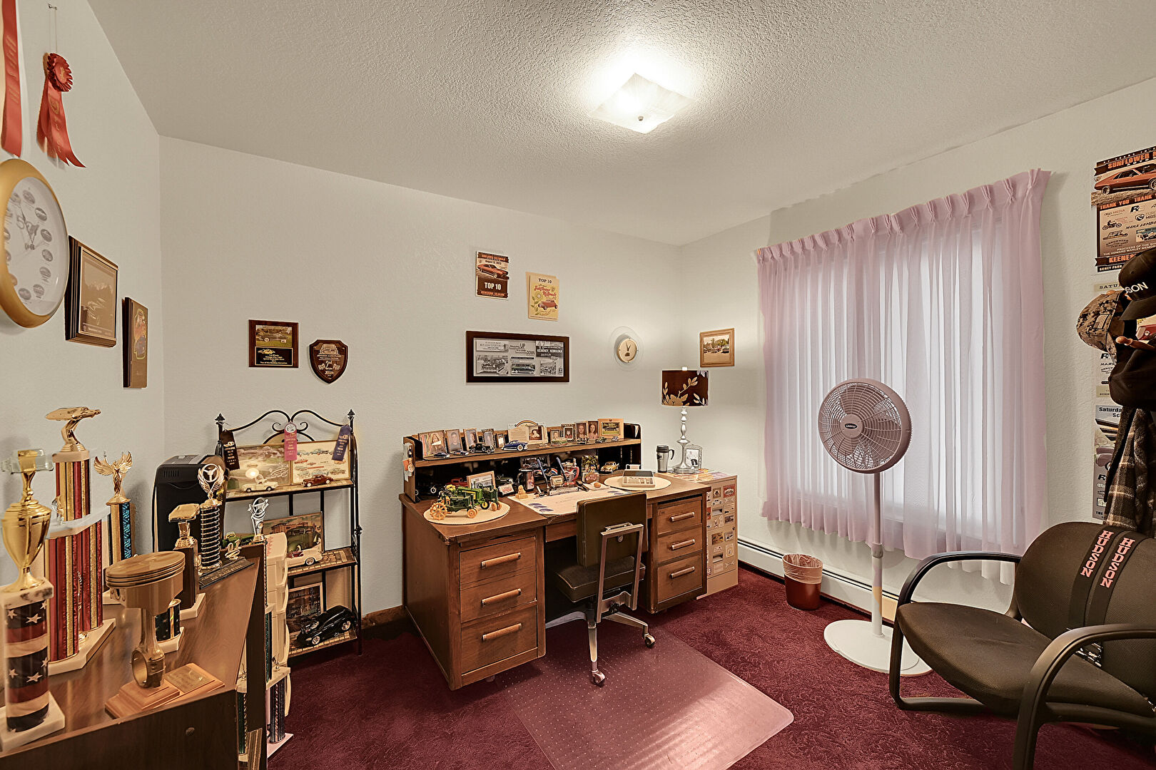 Baseboard Radiator, Baseboards Wall, Carpet, Drywall, Natural Light, Office Area, Textured Ceiling, Drywall, Textured Ceiling