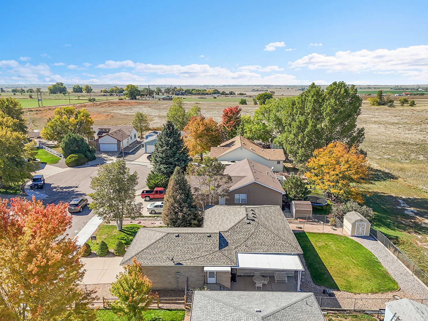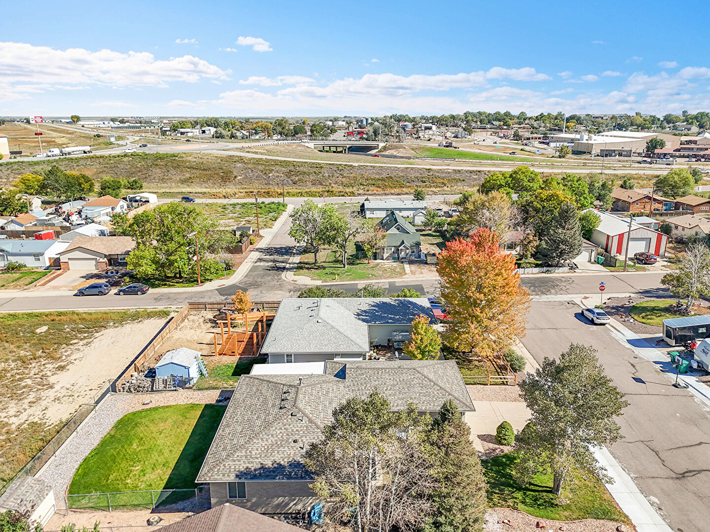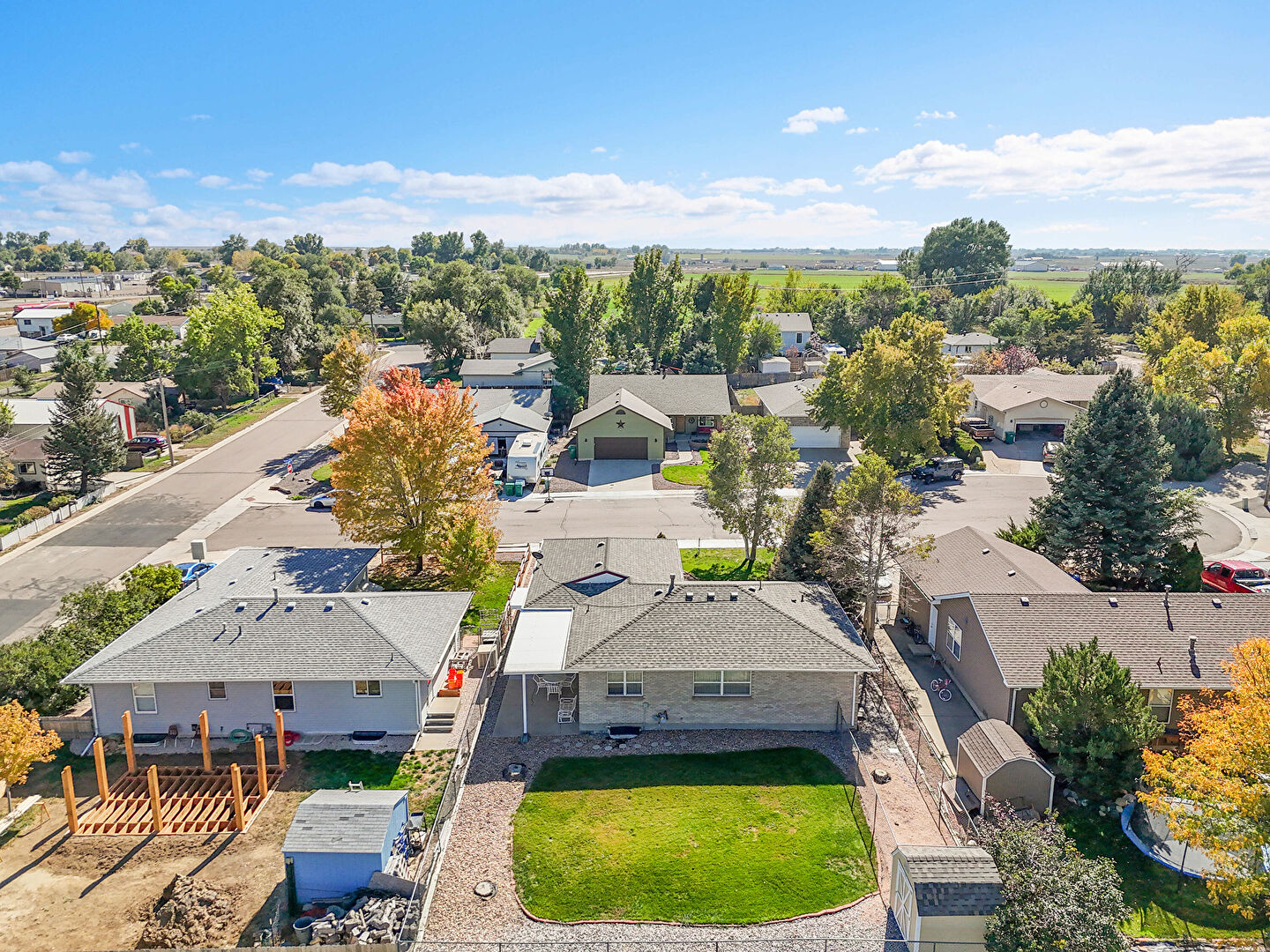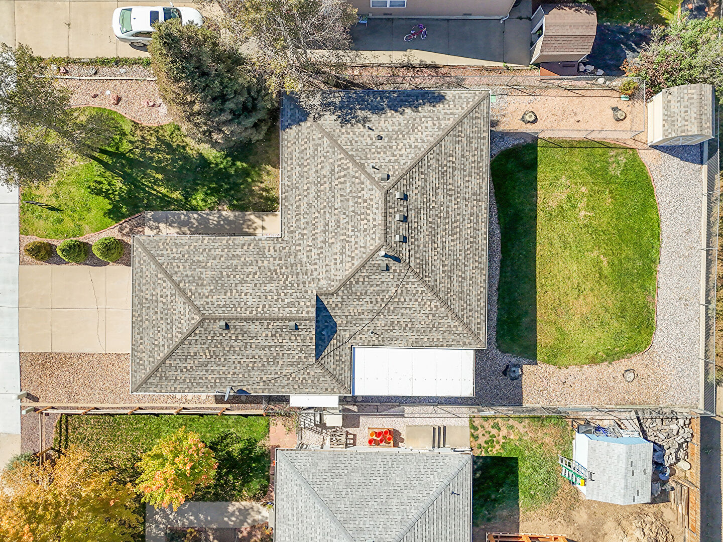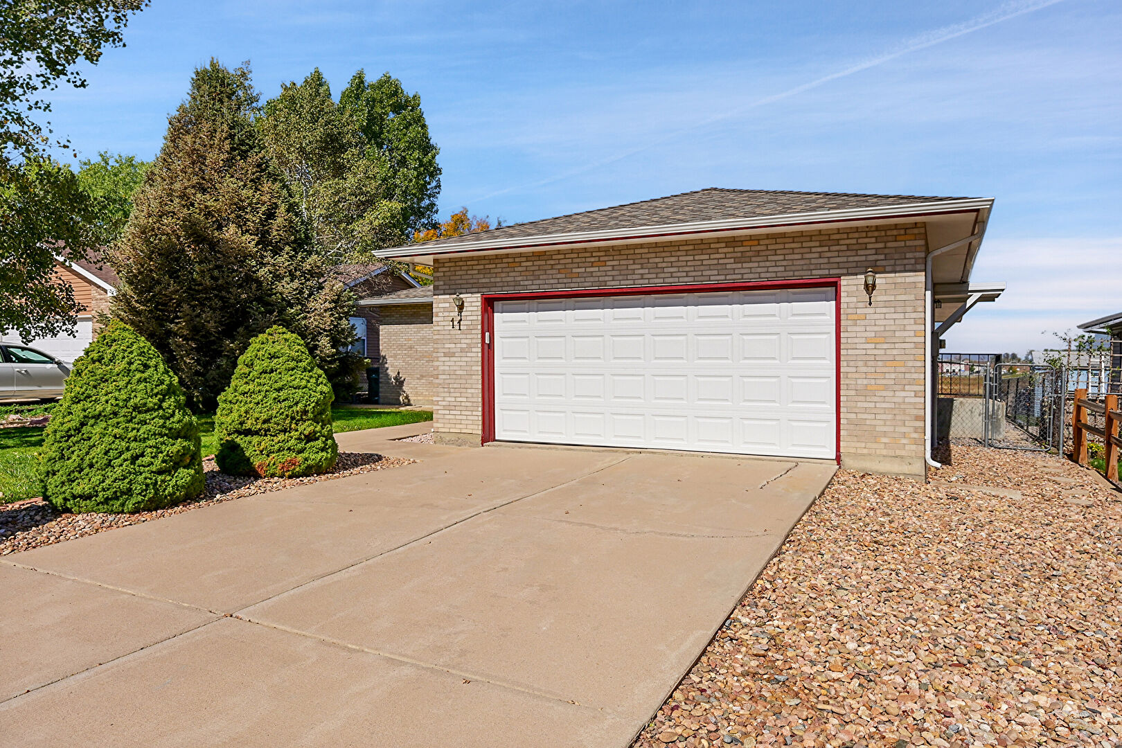 Concrete Foundation, Downspout, Driveway, Fence, Gutters, Shingle Roof, Brick Siding