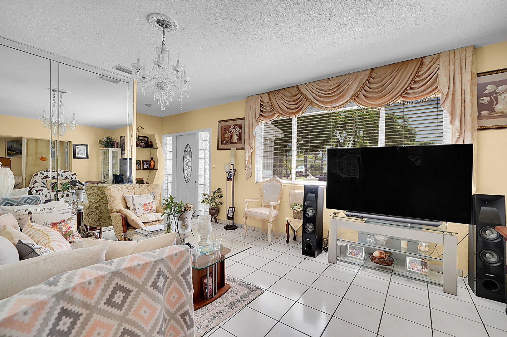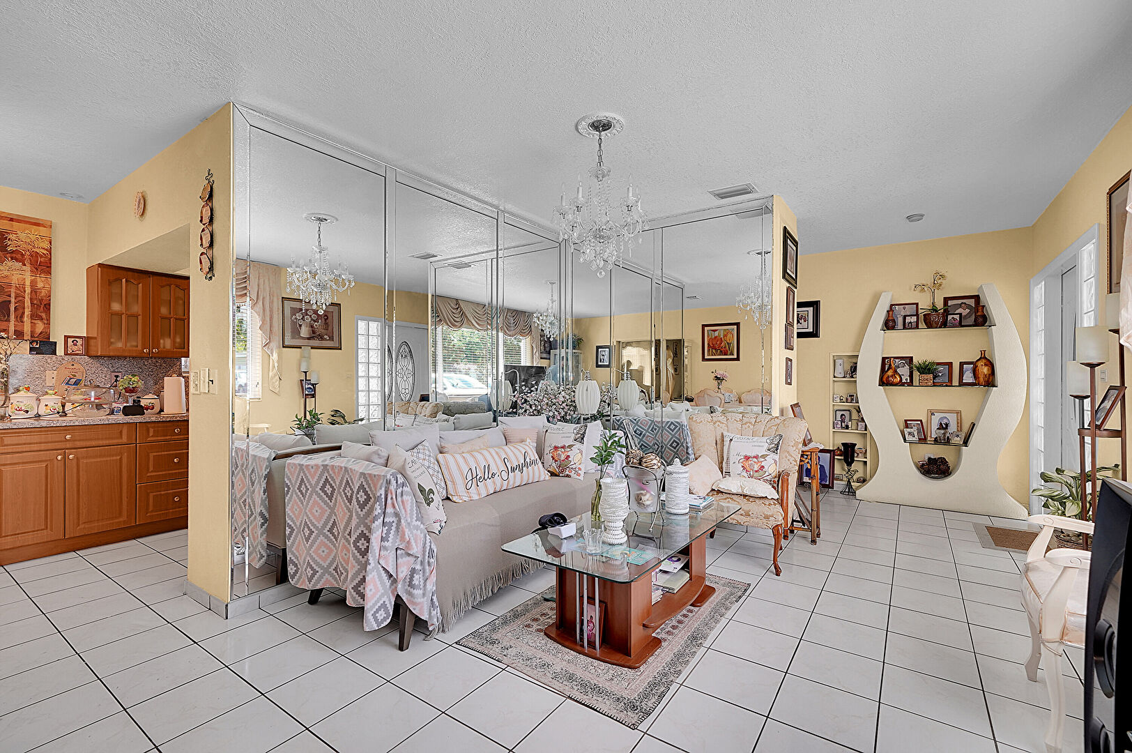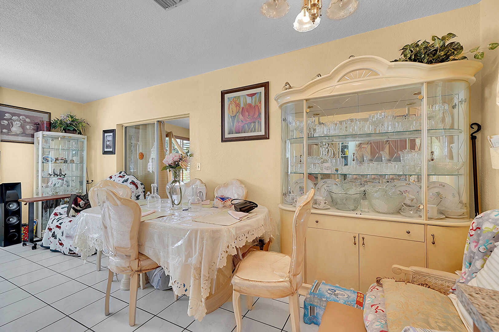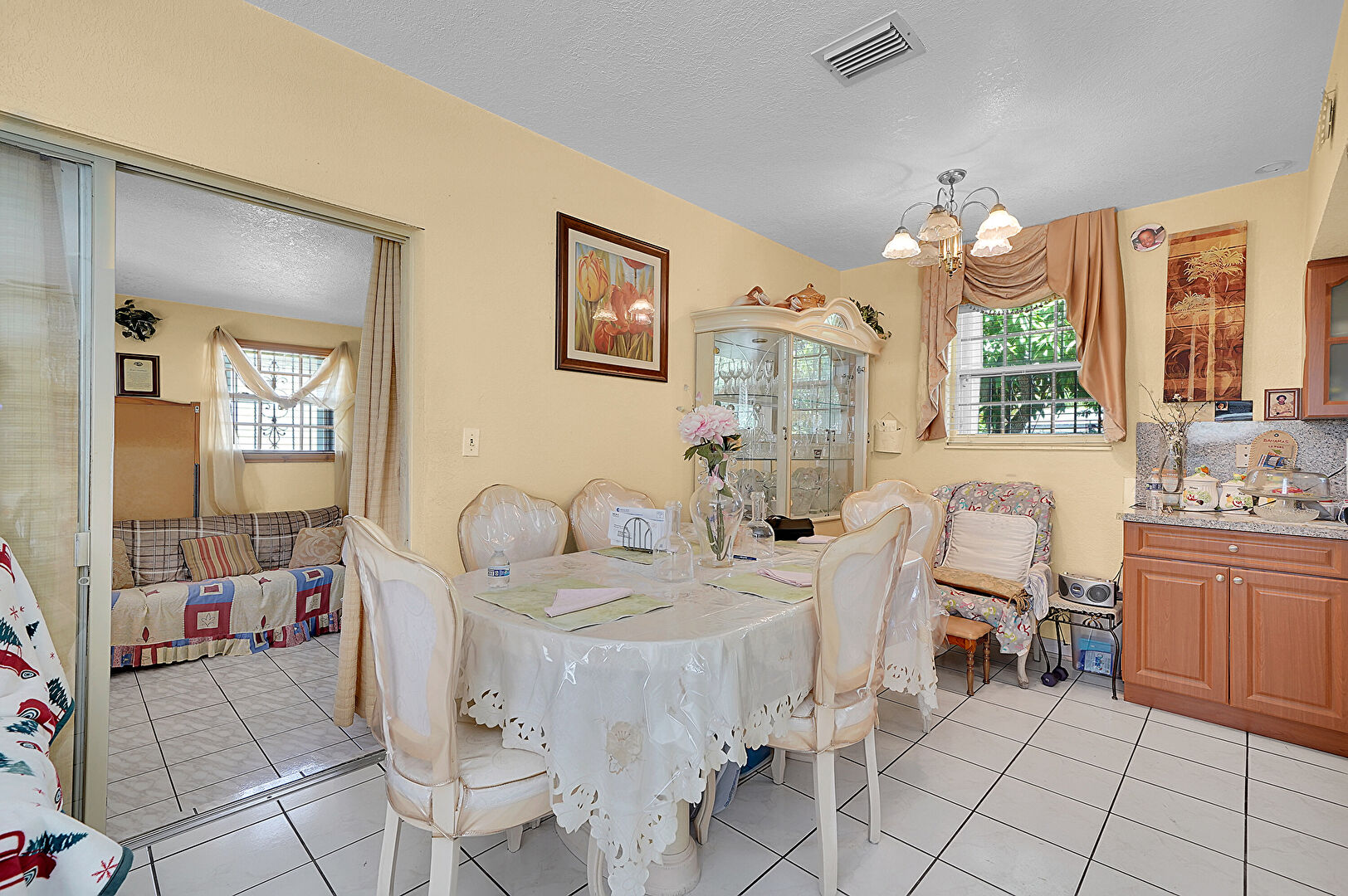 Natural Light, Notable Chandelier, Textured Ceiling, Tile Floor, Vent, Drywall