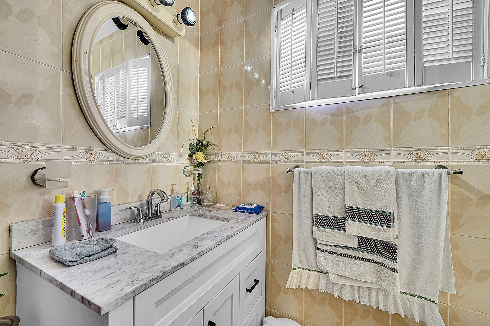 Full Bathroom, Half Bathroom, Natural Light, Tile Floor, Tile Wall, Vanity, Natural Light, Tile Wall