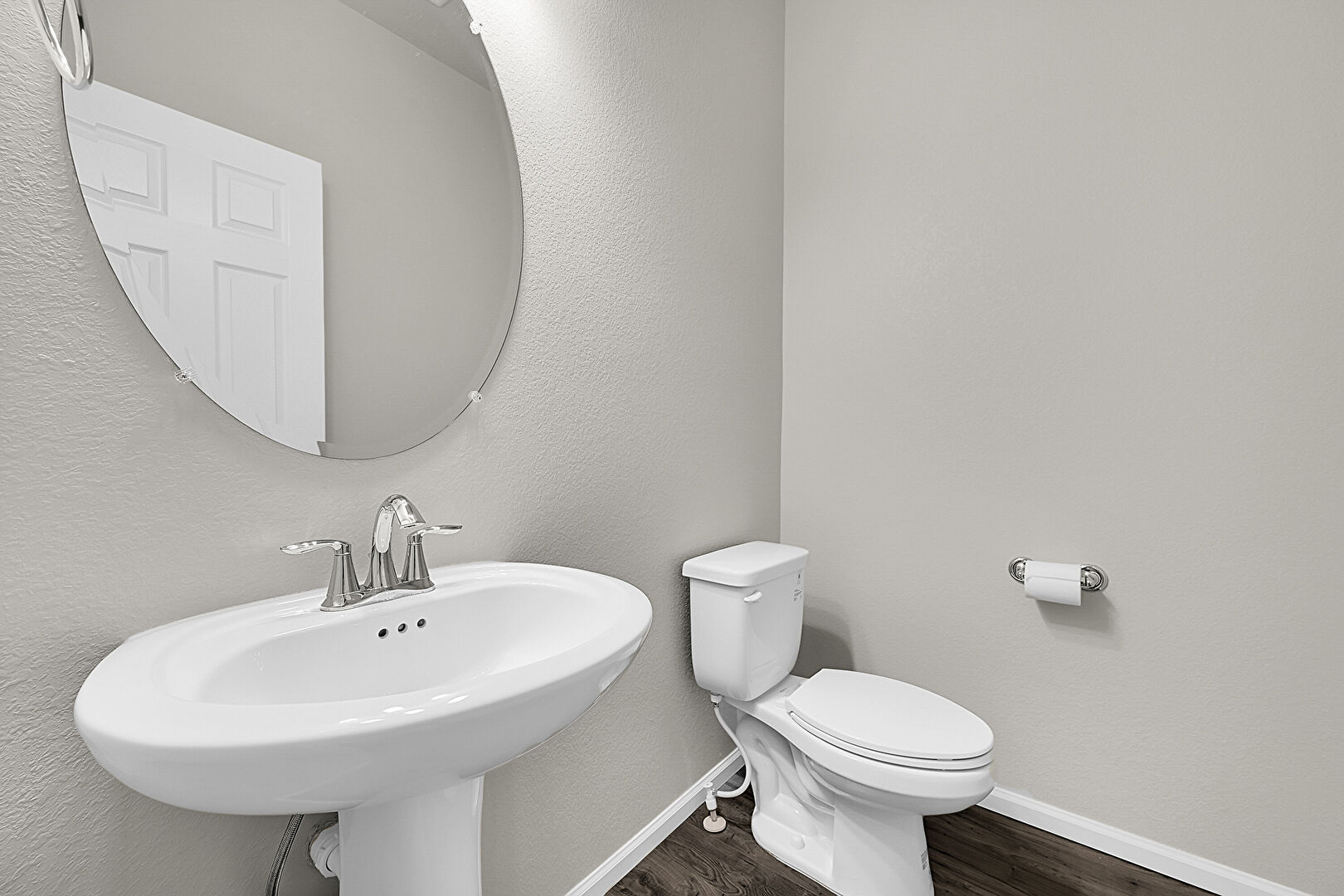 Baseboards Wall, Half Bathroom, Textured Wall, Wood Finish Floor