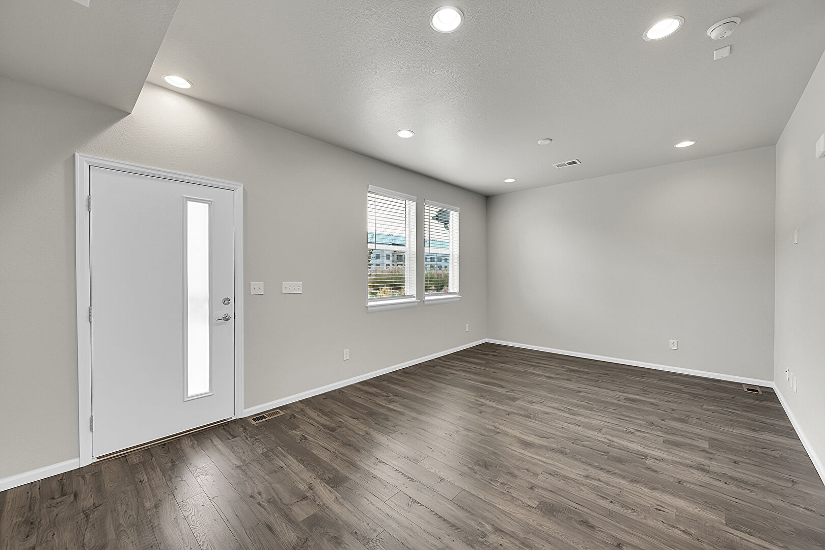 Baseboards Wall, Drywall, Recessed Lighting, Smoke Carbon Monoxide Detector, Vent, Wood Finish Floor, Natural Light, Vent