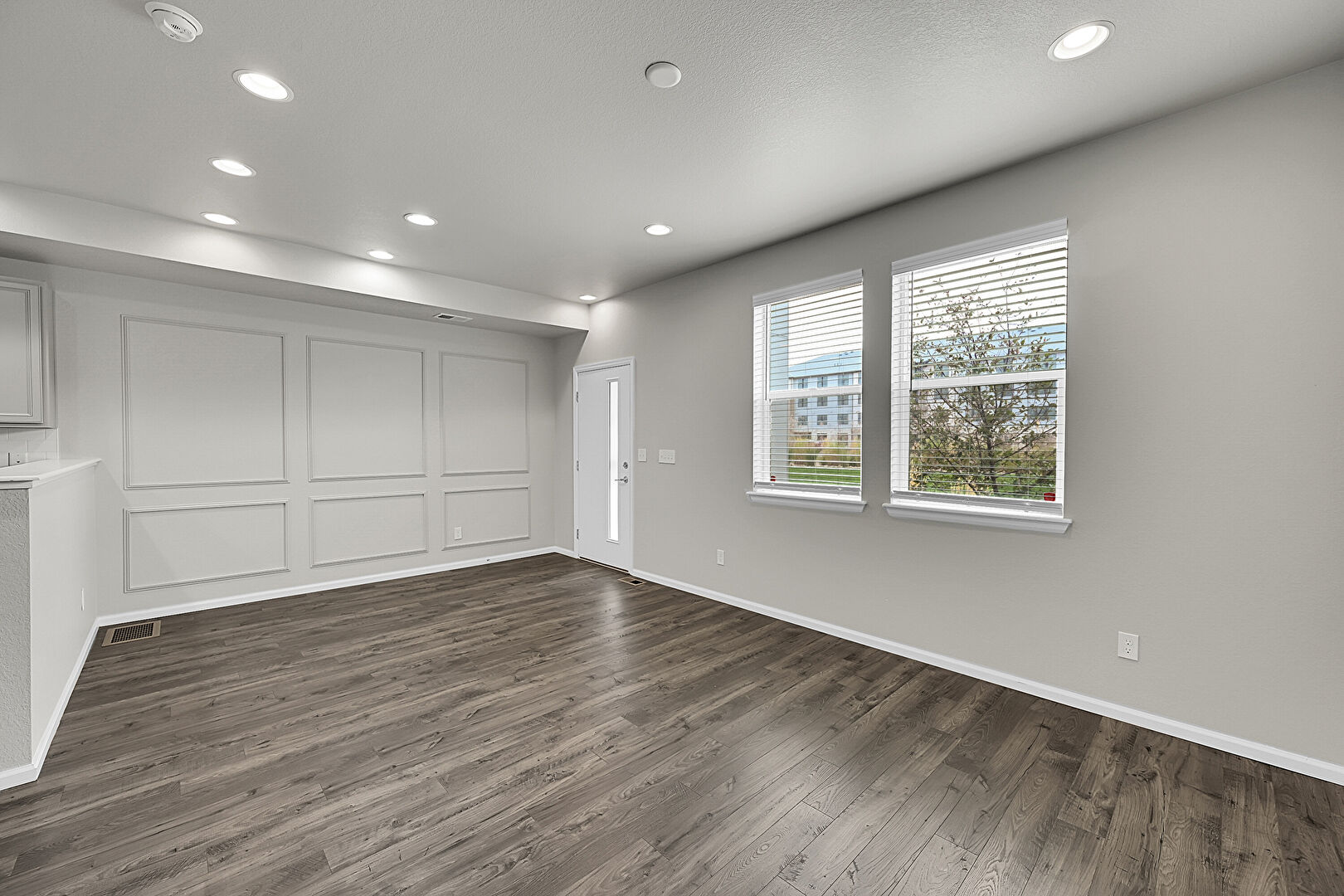 Baseboards Wall, Drywall, Natural Light, Recessed Lighting, Smoke Carbon Monoxide Detector, Wood Finish Floor, Vent