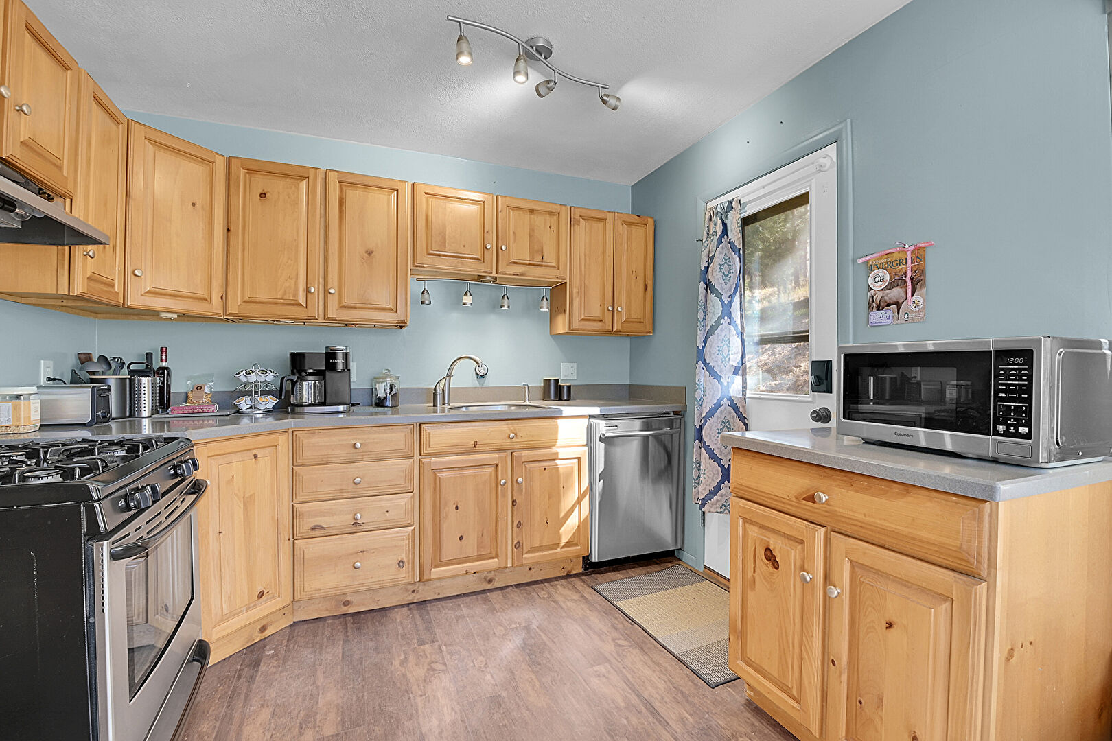 Drywall, Natural Light, Raised Cabinets, Stone Countertops, Wood Finish Floor, Drywall, Natural Light, Wood Finish Floor