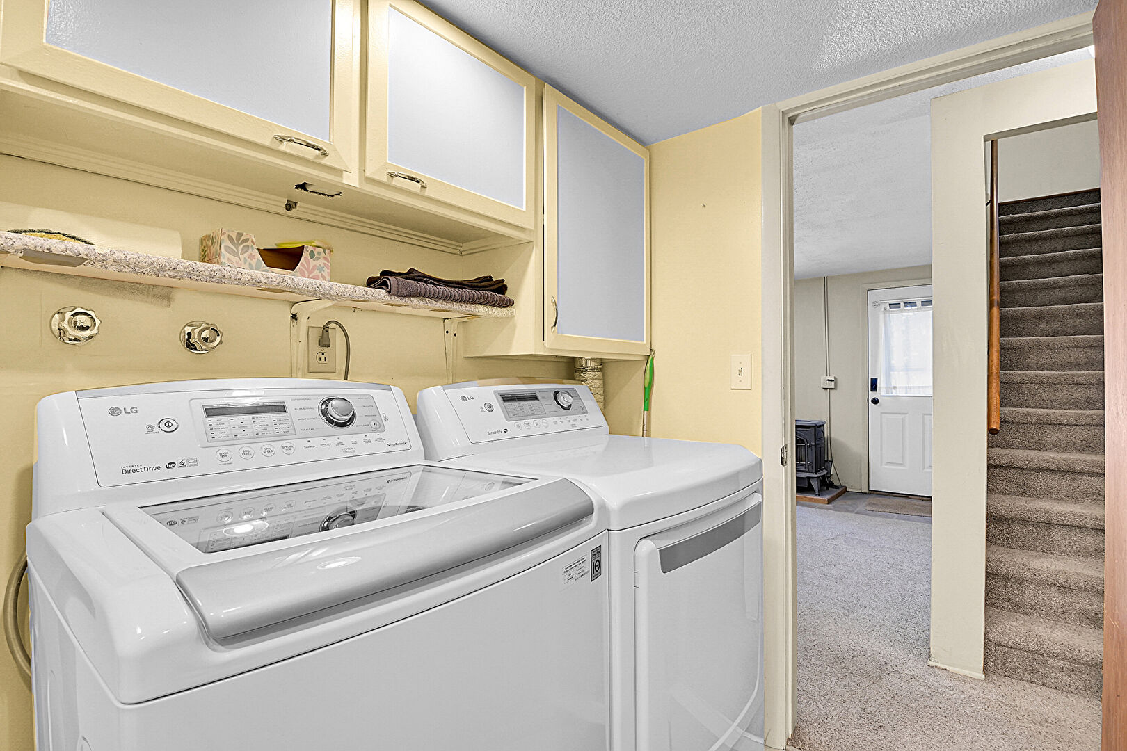 Baseboards Wall, Basement, Carpet, Drywall, Laundry, Natural Light, Recessed Lighting, Textured Ceiling, Tile Floor, Vent, Basement, Drywall