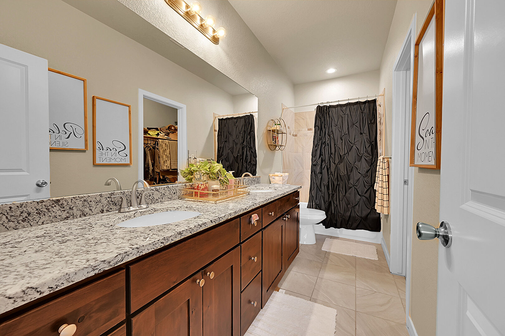 Double Vanity, Drywall, Full Bathroom, Recessed Lighting, Tile Floor, Walk In Closet, Baseboards Wall