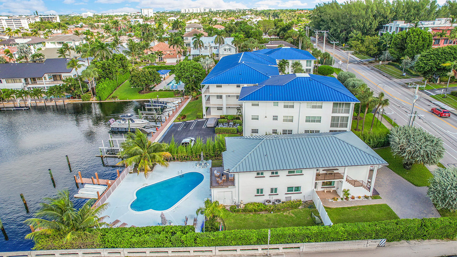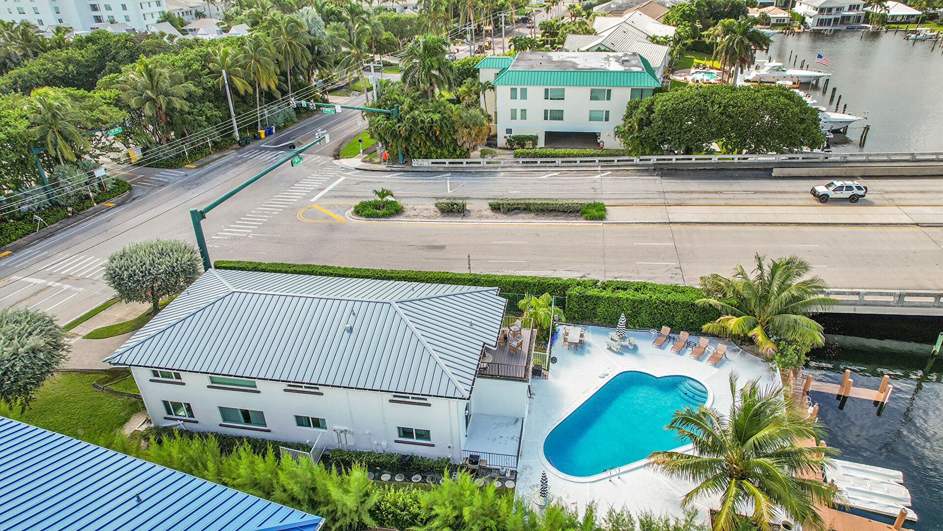 Balcony, Downspout, Fence, Gutters, Lawn, Patio, Pool, Stucco Siding, Grill