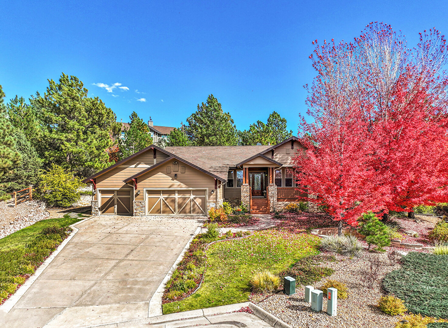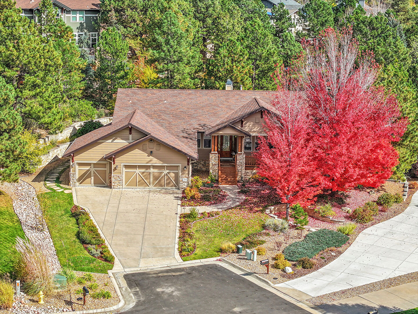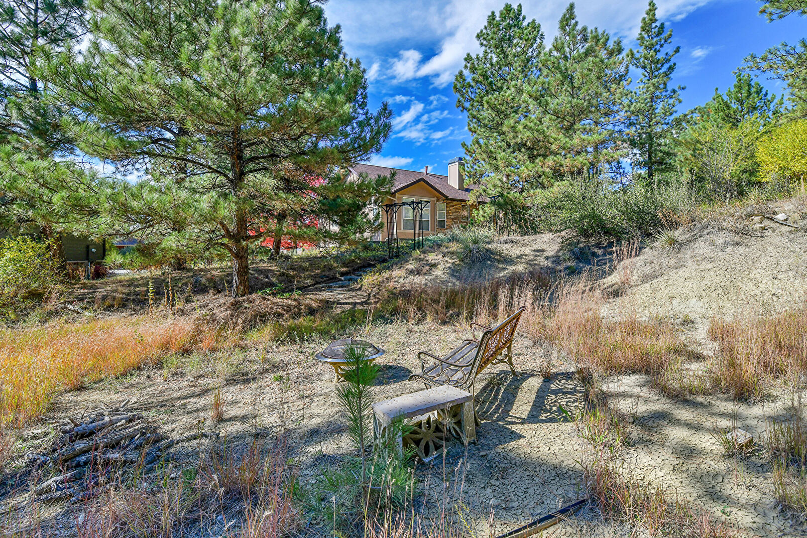Chimney, Downspout, Driveway, Gutters, Horizontal Siding, Lawn, Porch, Shingle Roof, Stairs, Stone Siding, Woods View, Downspout, Driveway, Stone Siding