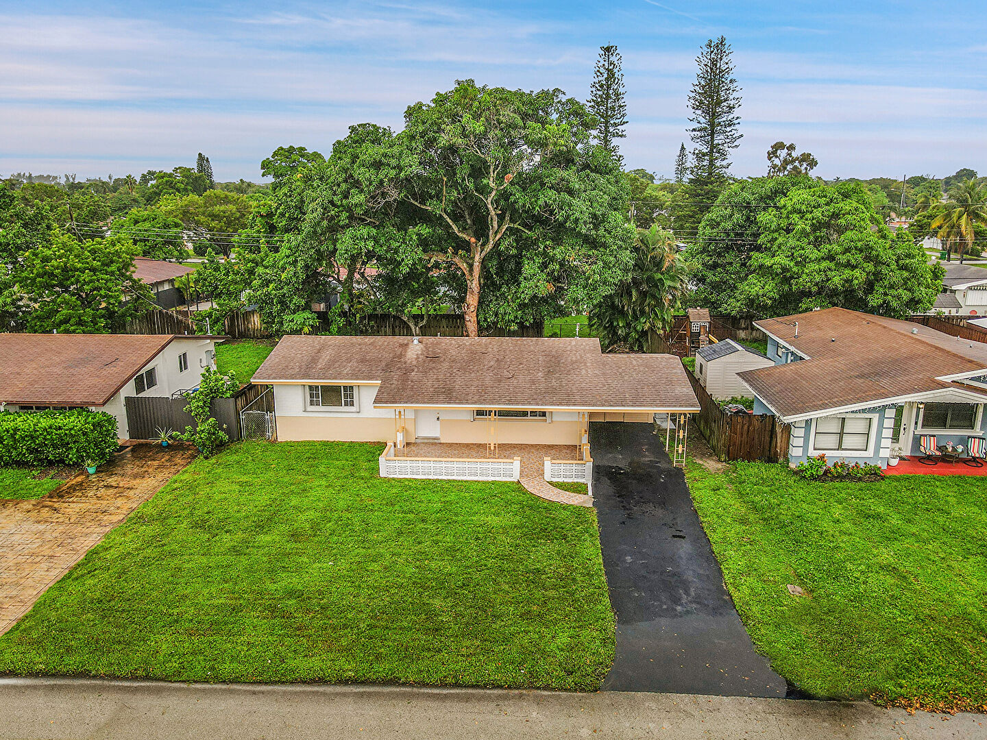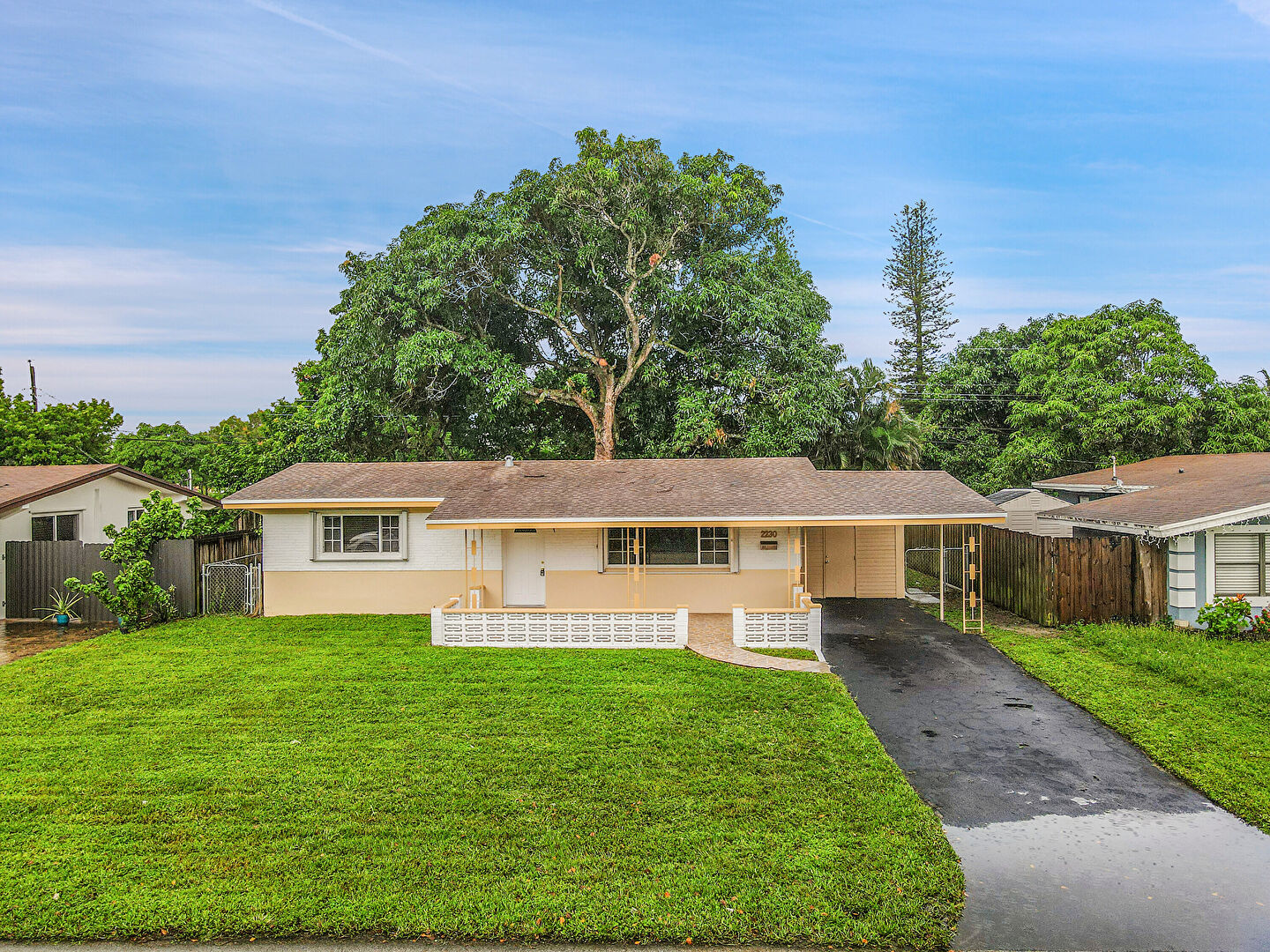 Attached Carport, Brick Siding, Driveway, Fence, Lawn