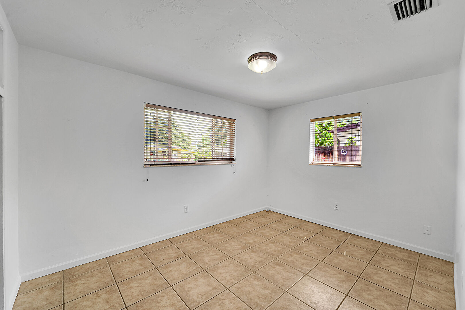 Baseboards Wall, Drywall, Natural Light, Notable Chandelier, Textured Ceiling, Vent, Tile Floor