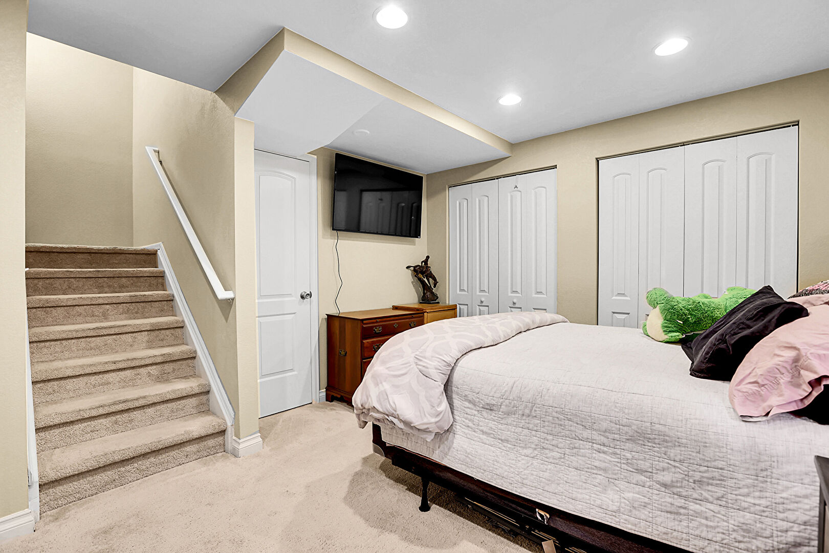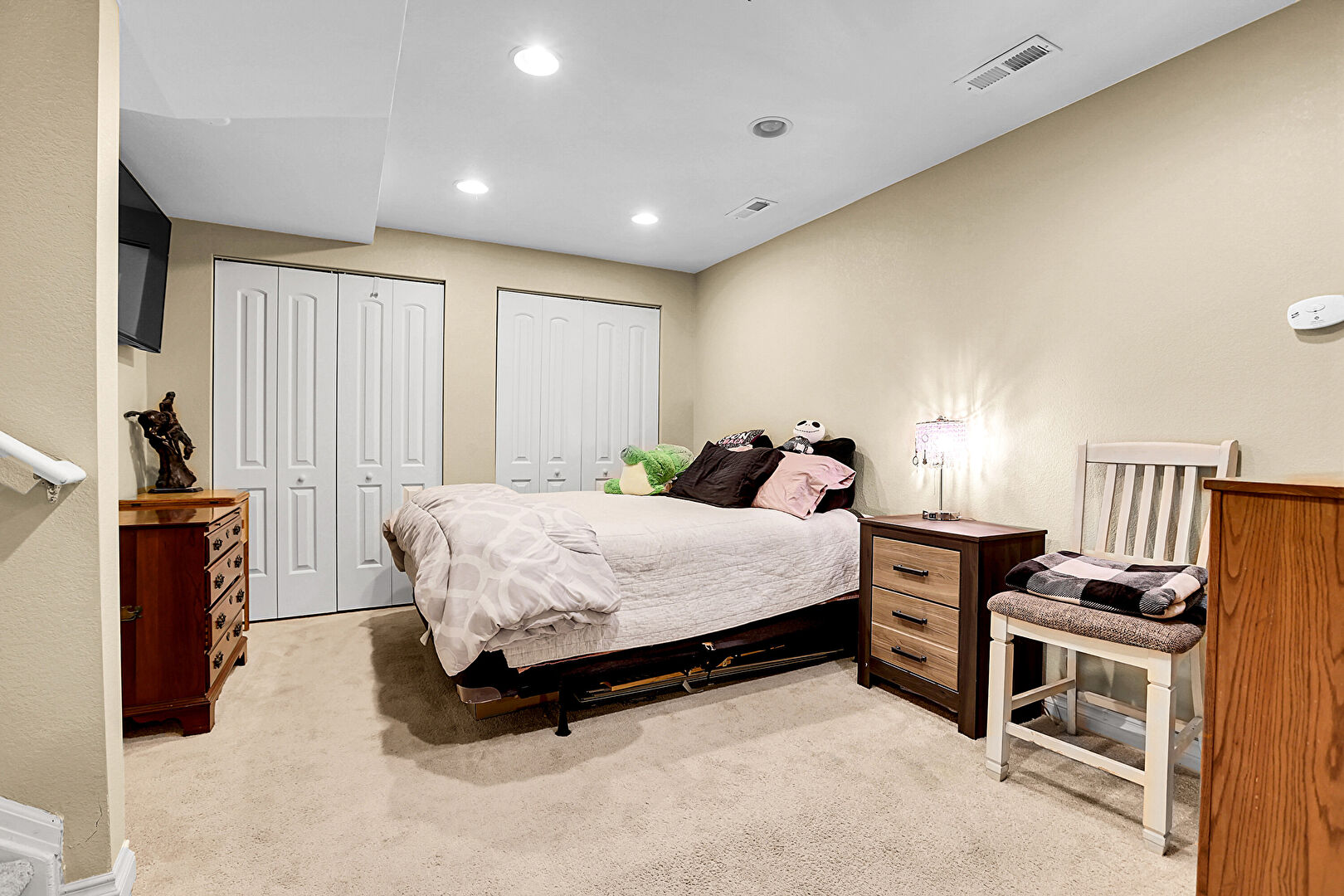 Baseboards Wall, Basement, Carpet, Drywall, Natural Light, Office Area, Recessed Lighting, Two Closets, Vent, Basement, Carpet, Drywall, Two Closets, Vent