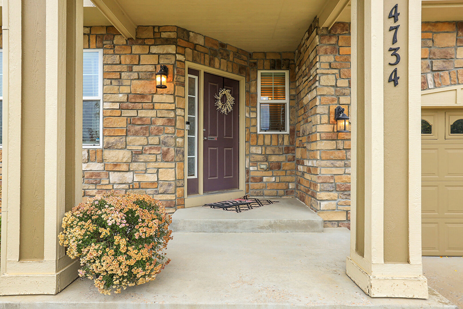 Downspout, Driveway, Fence, Garage, Gutters, Horizontal Siding, Lawn, Porch, Shingle Roof, Stone Siding, Stoop, Downspout, Fence, Stone Siding