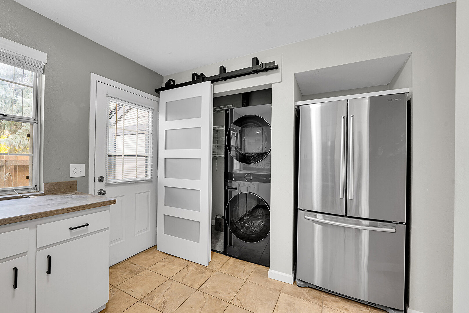 Baseboards Wall, Drywall, Laundry, Natural Light, Tile Floor, Barn Door