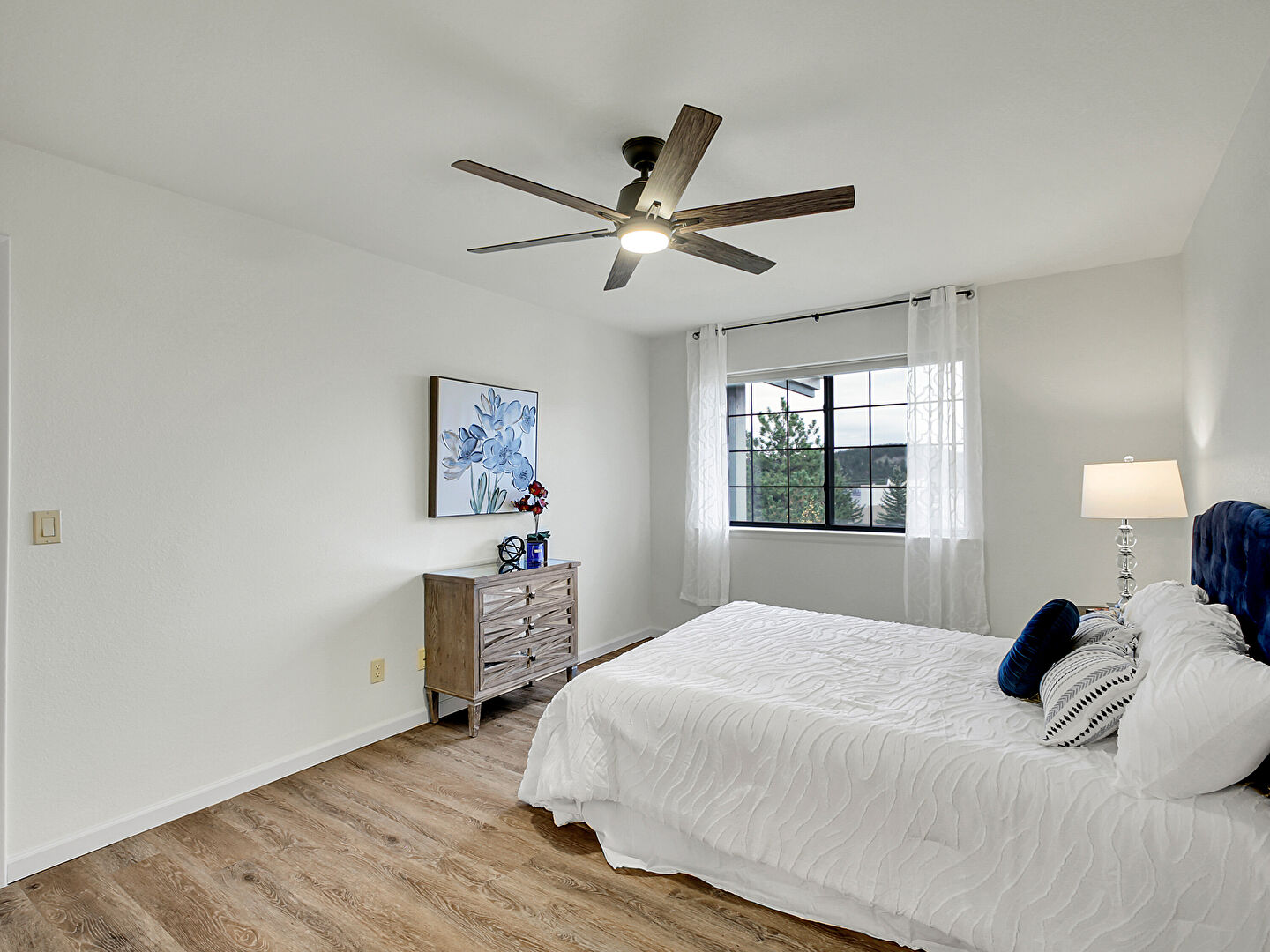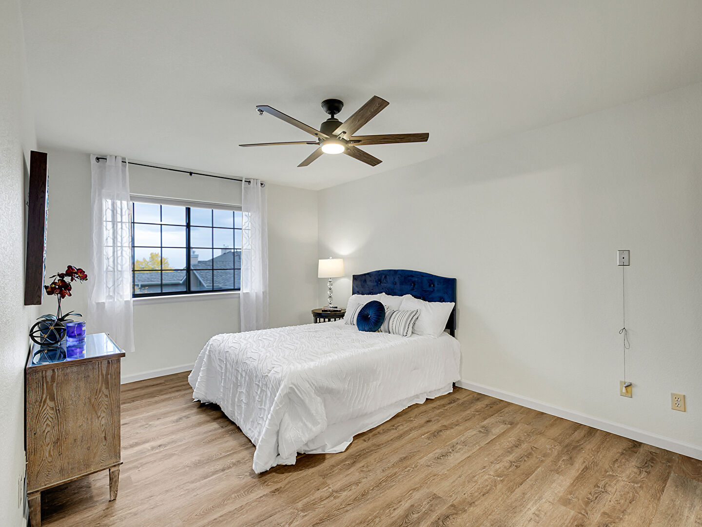 Baseboards Wall, Ceiling Fan, Drywall, Natural Light, Pendent Fire Sprinkler, Wood Finish Floor, Baseboards Wall, Ceiling Fan, Textured Ceiling
