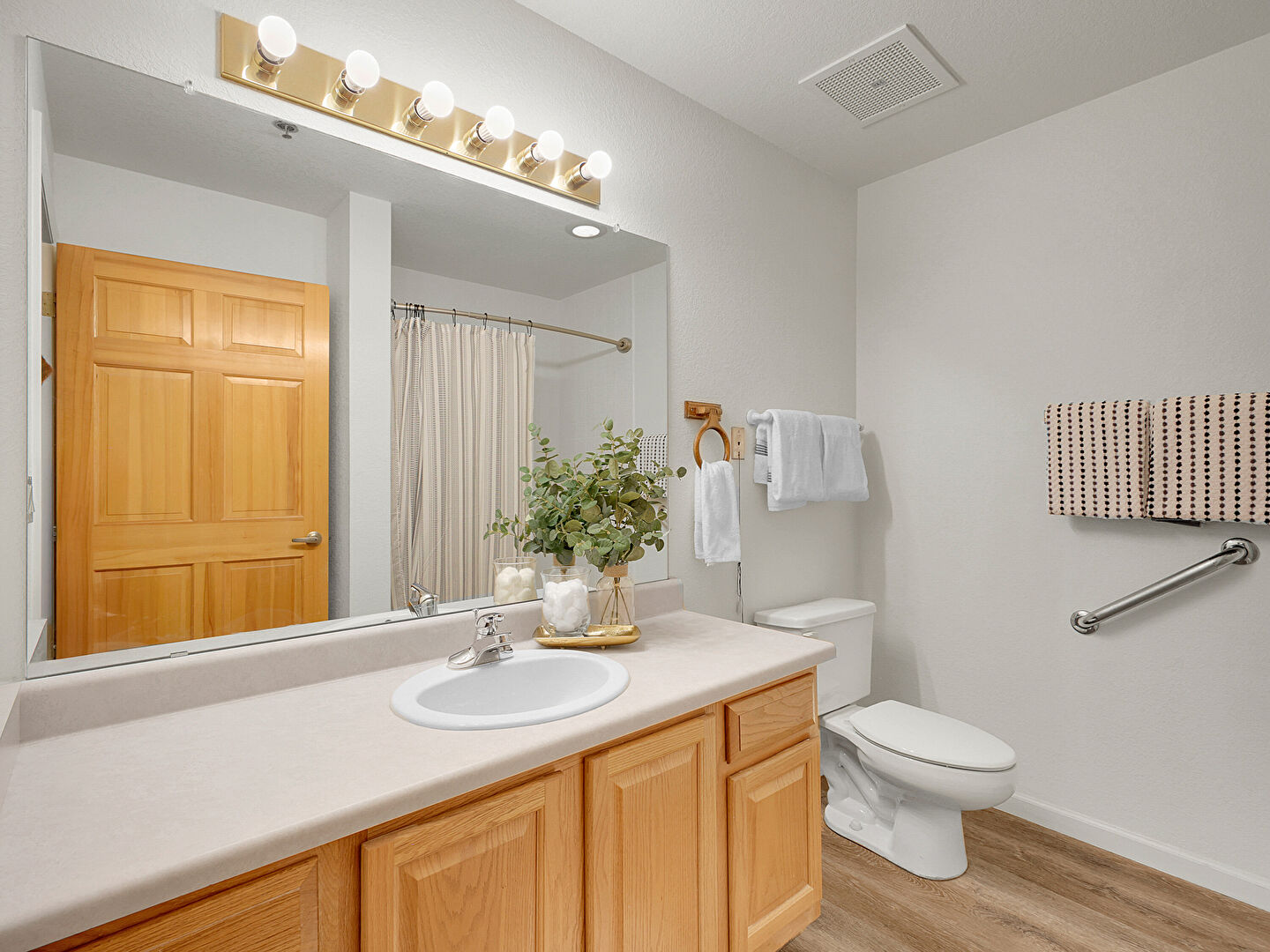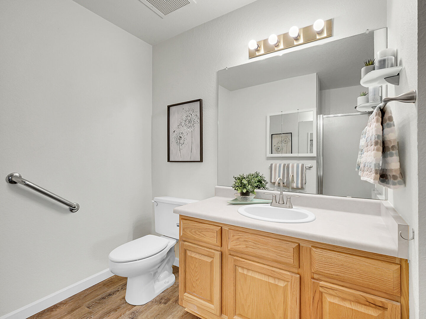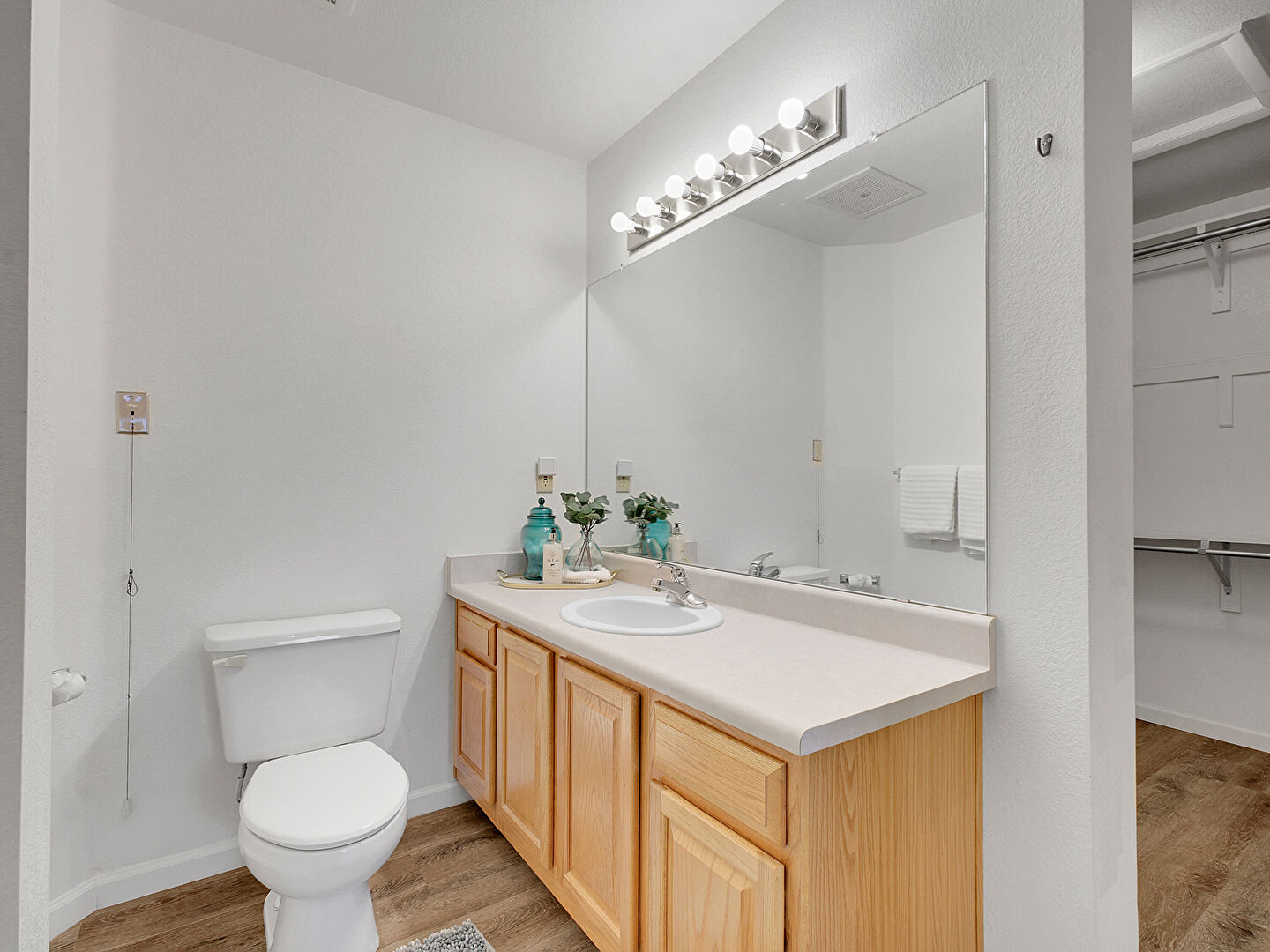 Baseboards Wall, Combined Bath Shower, Drywall, Full Bathroom, Vanity, Vent, Walk In Closet, Wood Finish Floor, Drywall, Full Bathroom, Vent