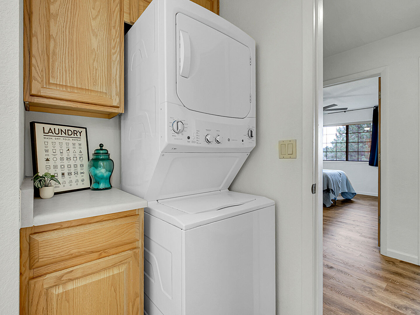 Baseboards Wall, Drywall, Natural Light, Wood Finish Floor, Laundry