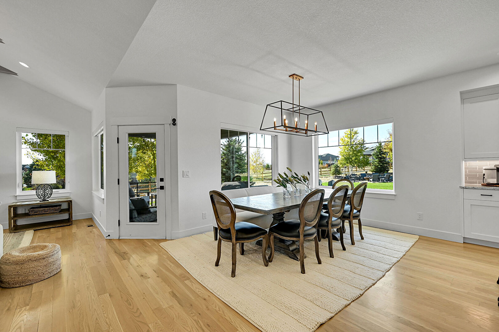 Baseboards Wall, Carpet, Drywall, Indoor Bar, L Shaped Kitchen, Natural Light, Notable Chandelier, Recessed Lighting, Stairs, Textured Ceiling, Wine Cooler, Wood Finish Floor, Tray Ceiling, Vaulted Ceiling, Wood Finish Floor