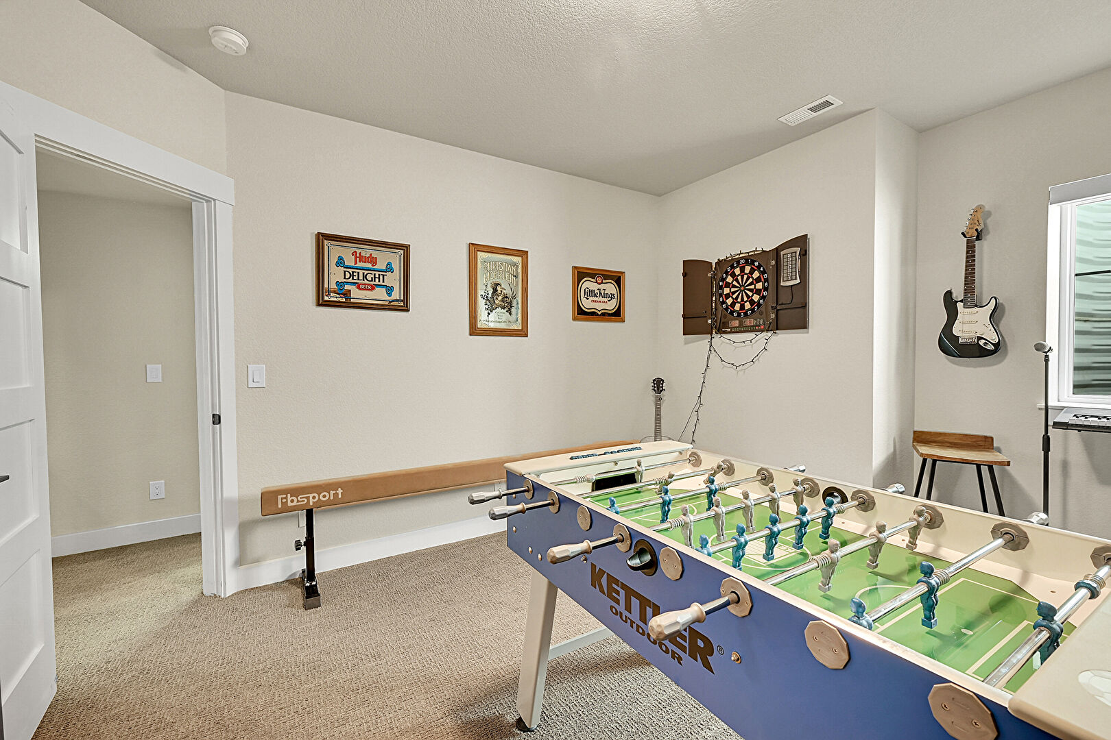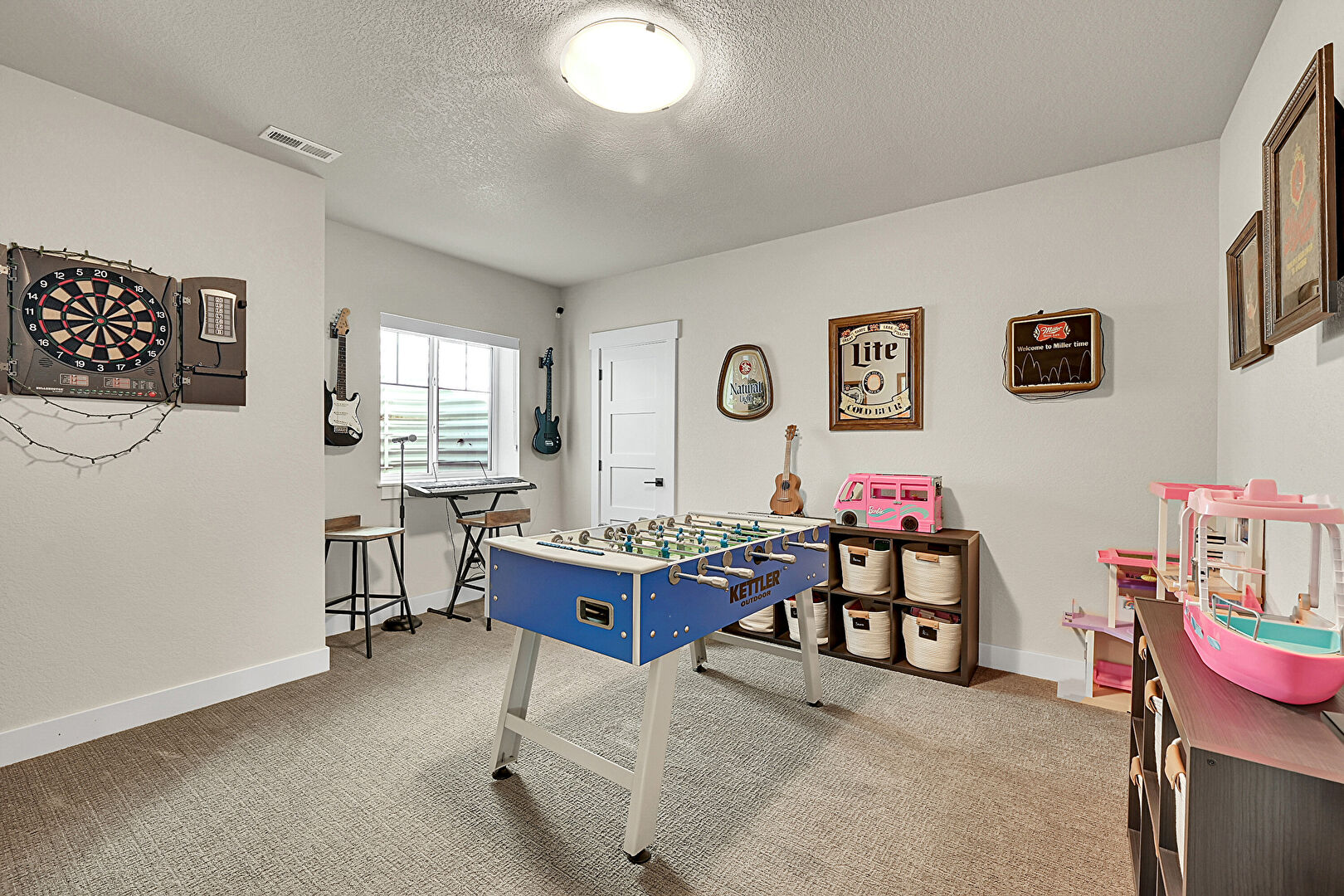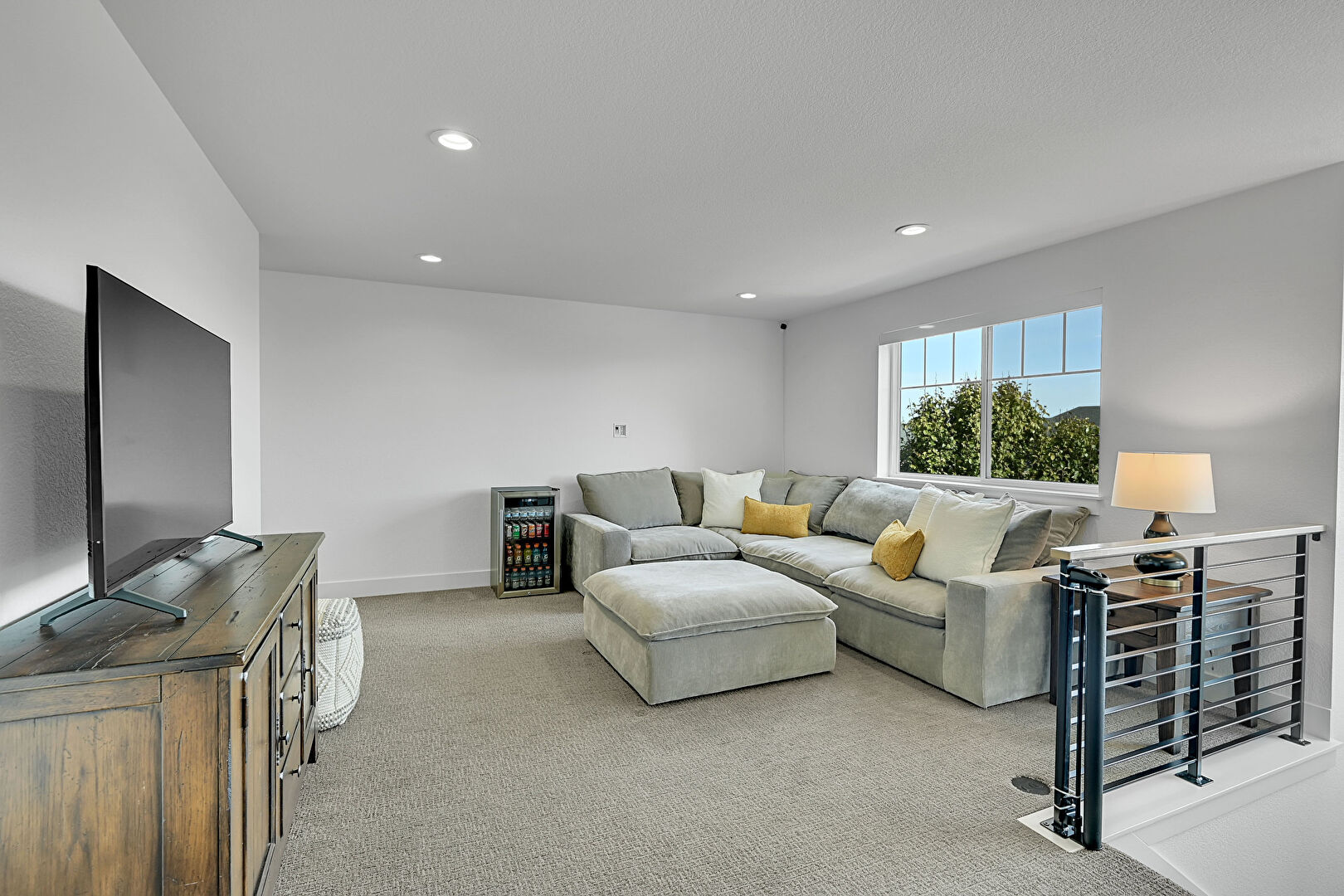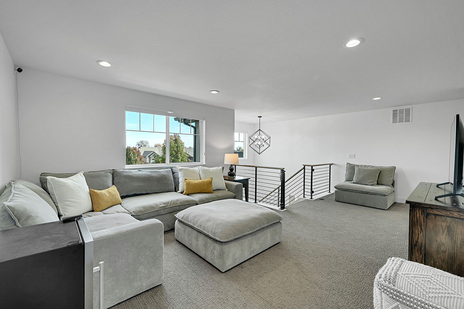 Barn Door, Baseboards Wall, Carpet, Drywall, Indoor Bar, Natural Light, Recessed Lighting, Smoke Carbon Monoxide Detector, Stairs, Textured Ceiling, Textured Wall, Tray Ceiling, Vent, Wine Cooler, Carpet, Drywall, Indoor Bar, Natural Light, Textured Ceiling, Textured Wall