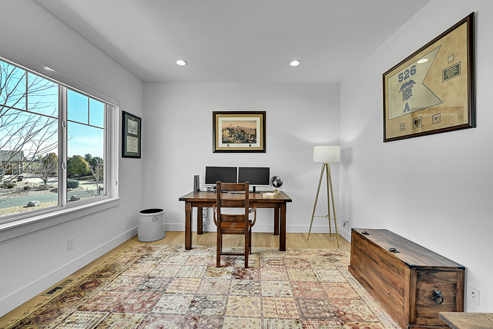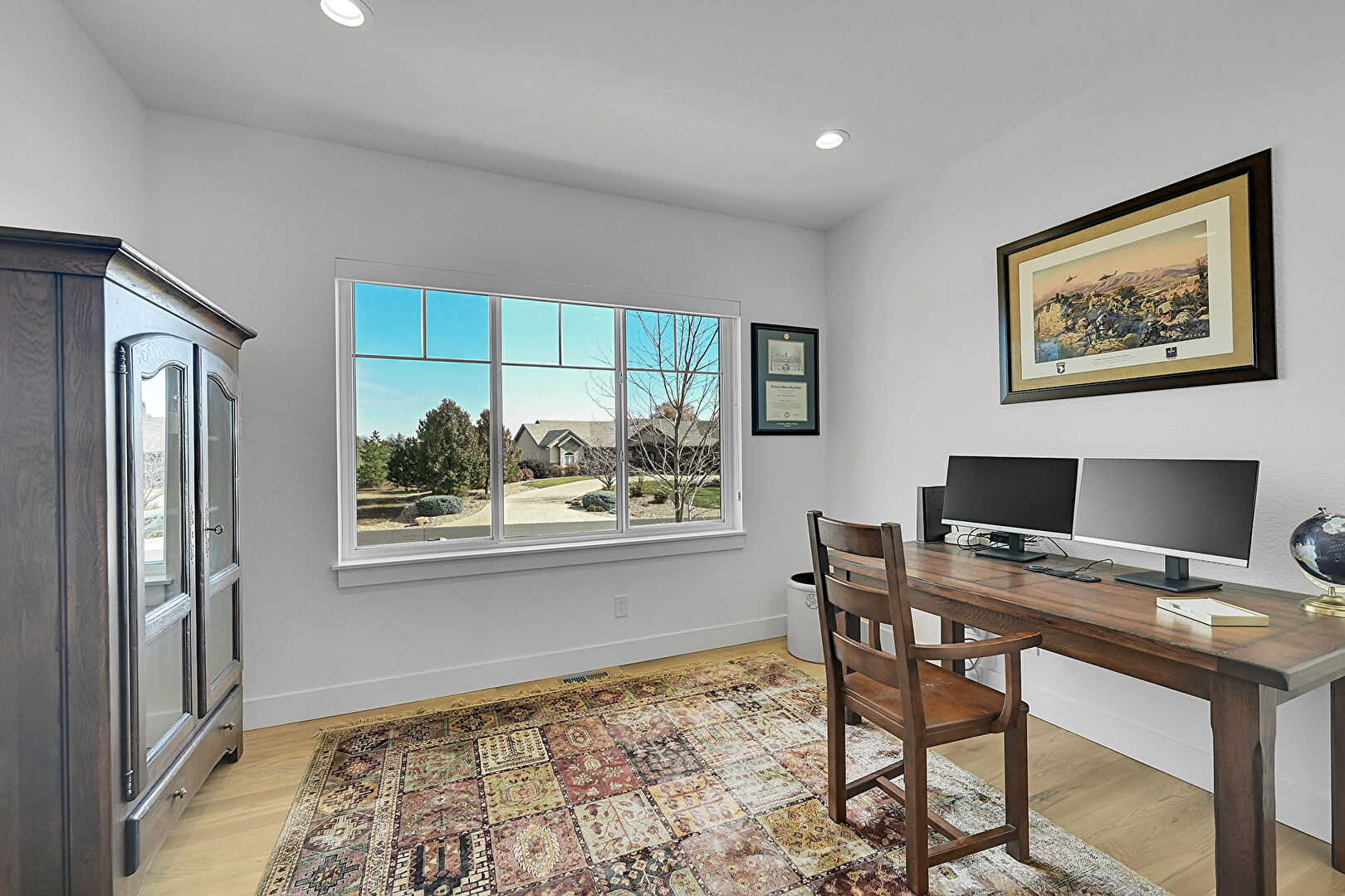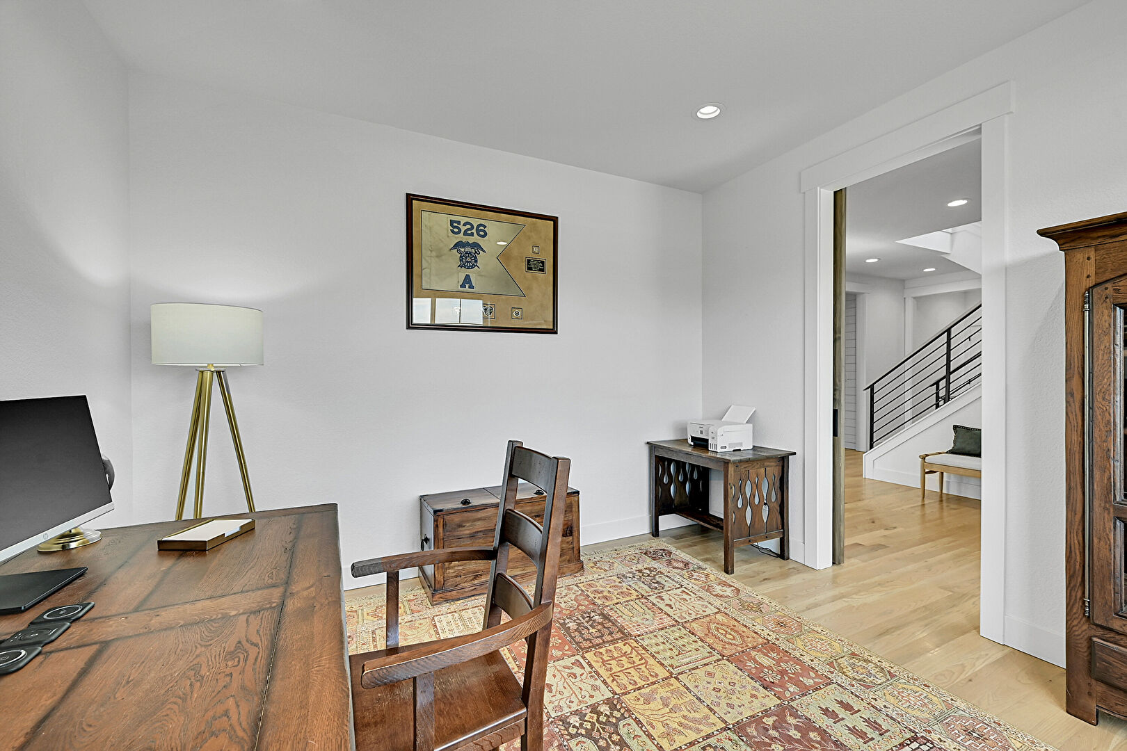 Baseboards Wall, Drywall, Natural Light, Office Area, Recessed Lighting, Vent, Wood Finish Floor, Baseboards Wall, Natural Light, Wood Finish Floor