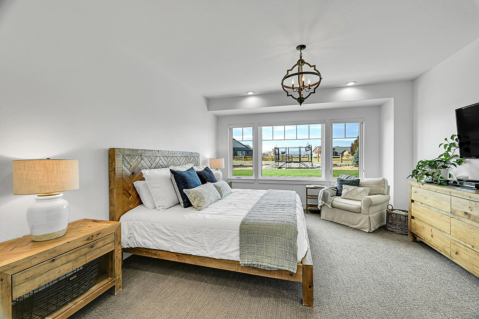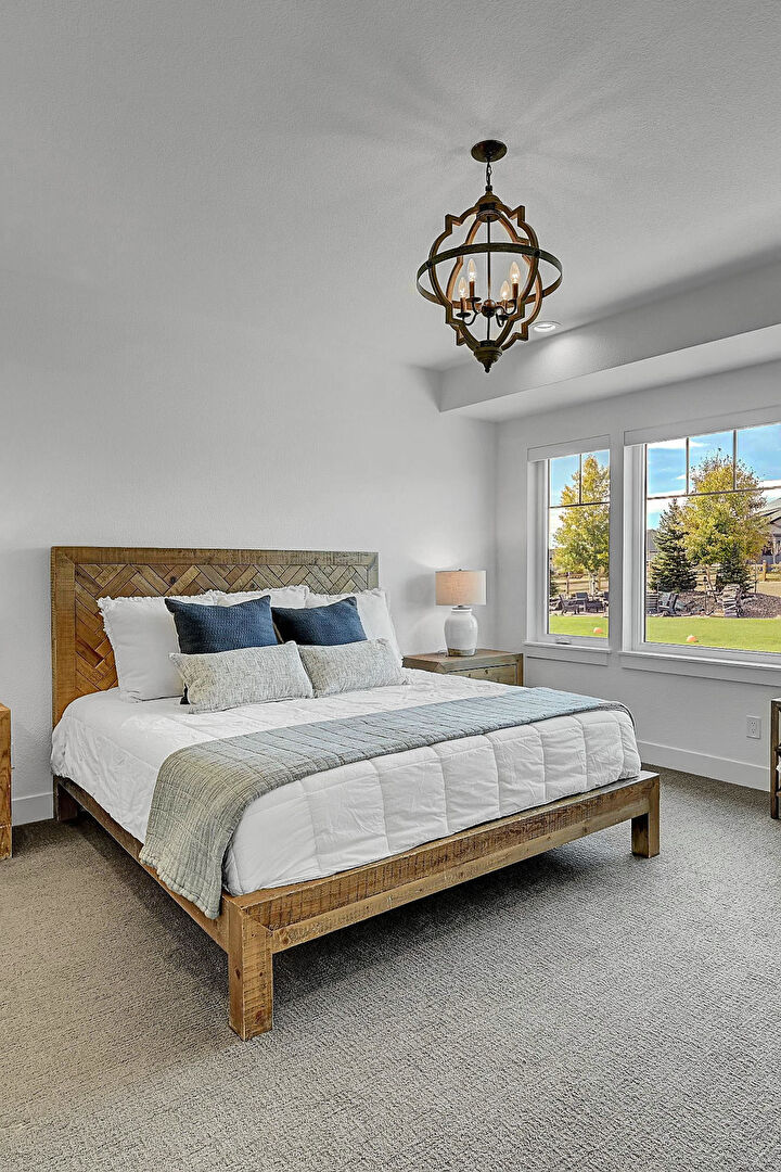 Carpet, Drywall, Natural Light, Notable Chandelier, Baseboards Wall