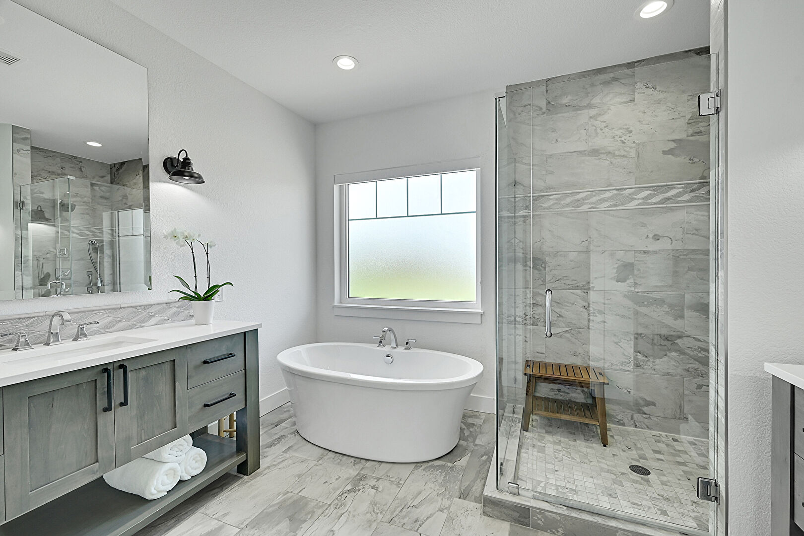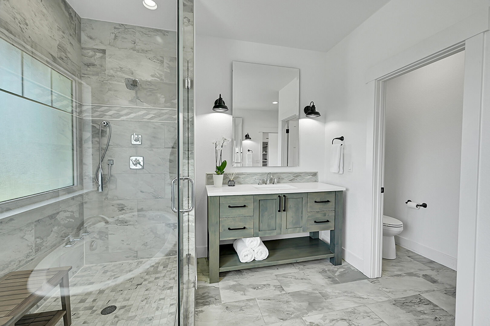 Baseboards Wall, Drywall, Full Bathroom, Marble Finish Floor, Natural Light, Recessed Lighting, Two Single Vanities, Vanity, Water Closet, Full Bathroom, Marble Finish Floor, Vent