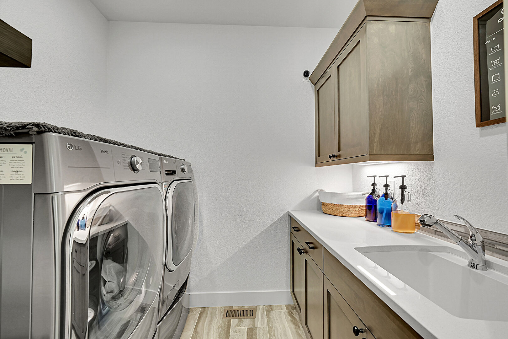 Baseboards Wall, Drywall, Laundry, Vent, Washer Dryer, Wood Finish Floor, Recessed Lighting, Wood Finish Floor