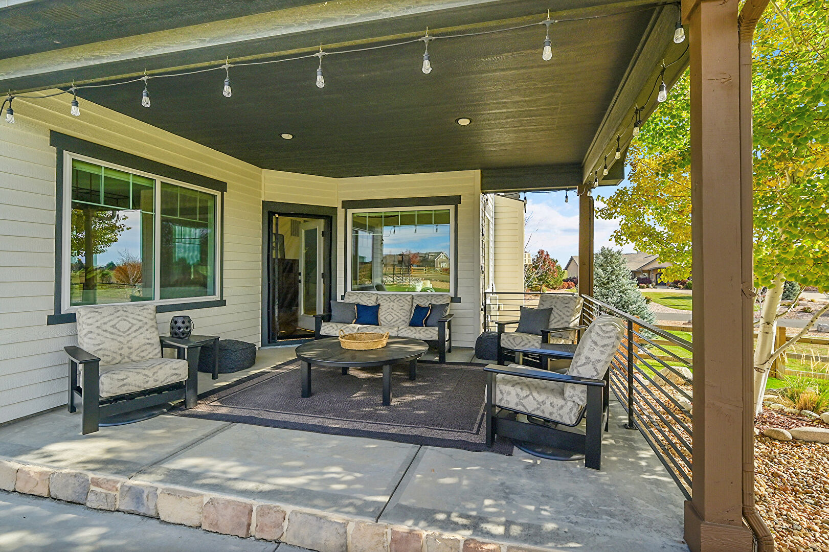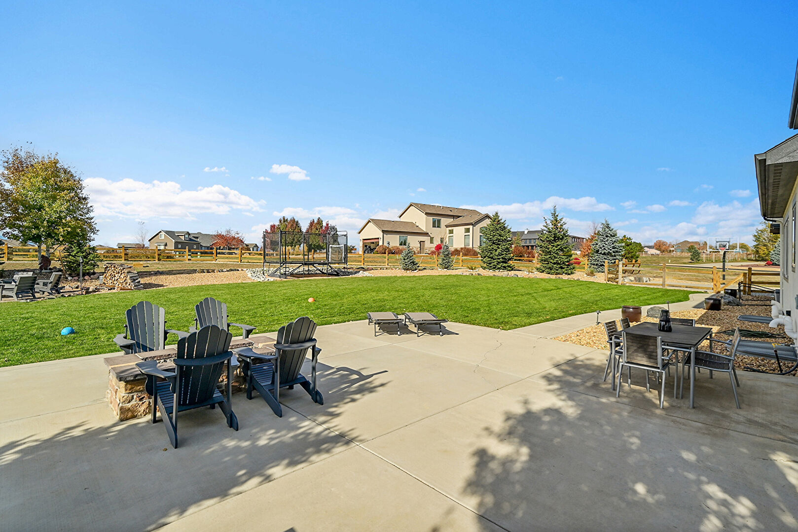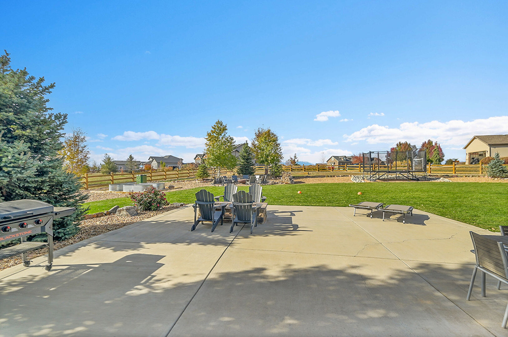 Fence, Fire Pit, Grill, Lawn, Outdoor Dining Area, Outdoor Living Space, Patio, Residential View, Trampoline, Fence, Fire Pit, Lawn, Outdoor Living Space, Patio, Porch