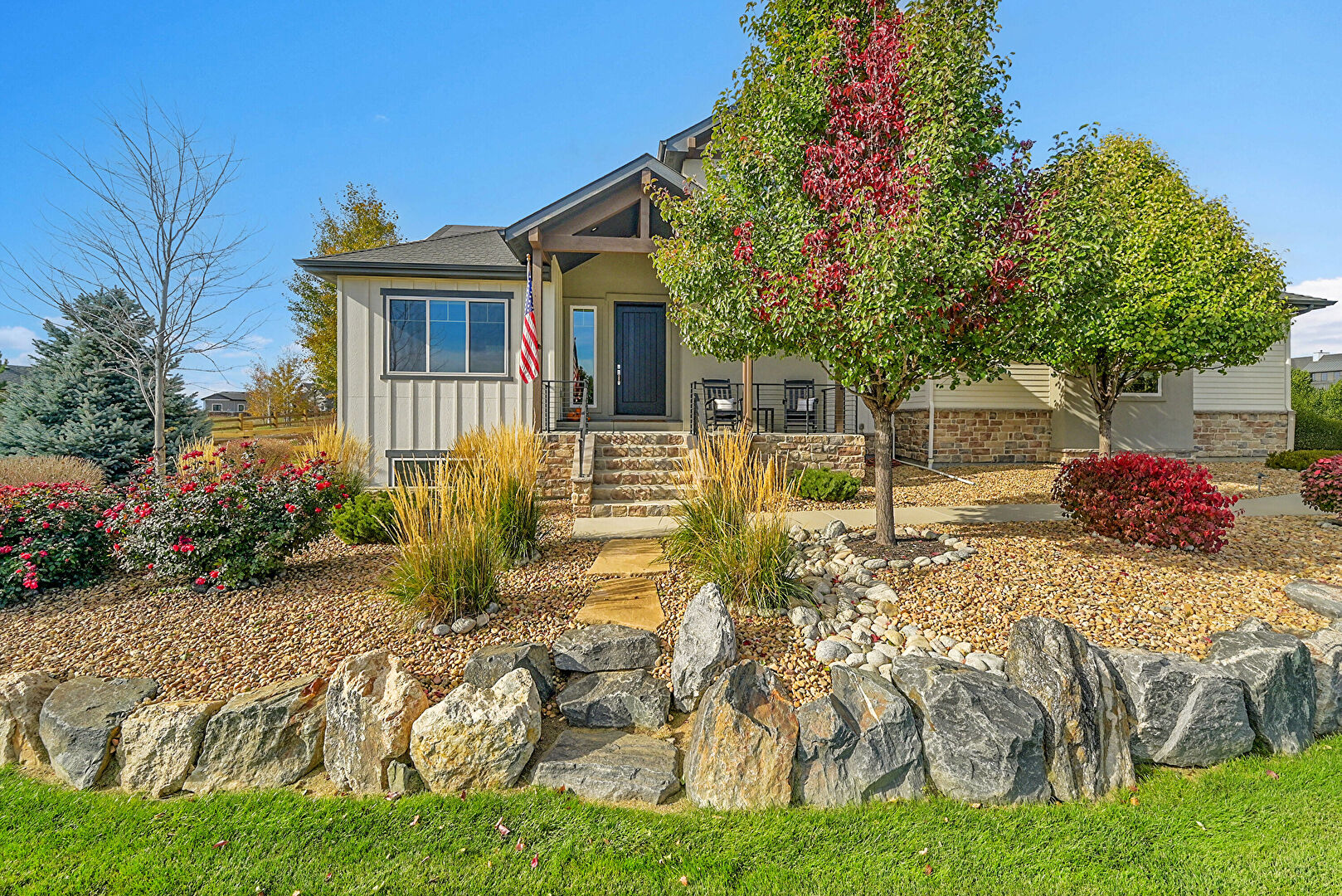 Board Batten Siding, Gutters, Horizontal Siding, Lawn, Patio, Porch, Shingle Roof, Stairs, Stone Siding, Vertical Siding, Board Batten Siding, Downspout, Horizontal Siding, Lawn, Vertical Siding