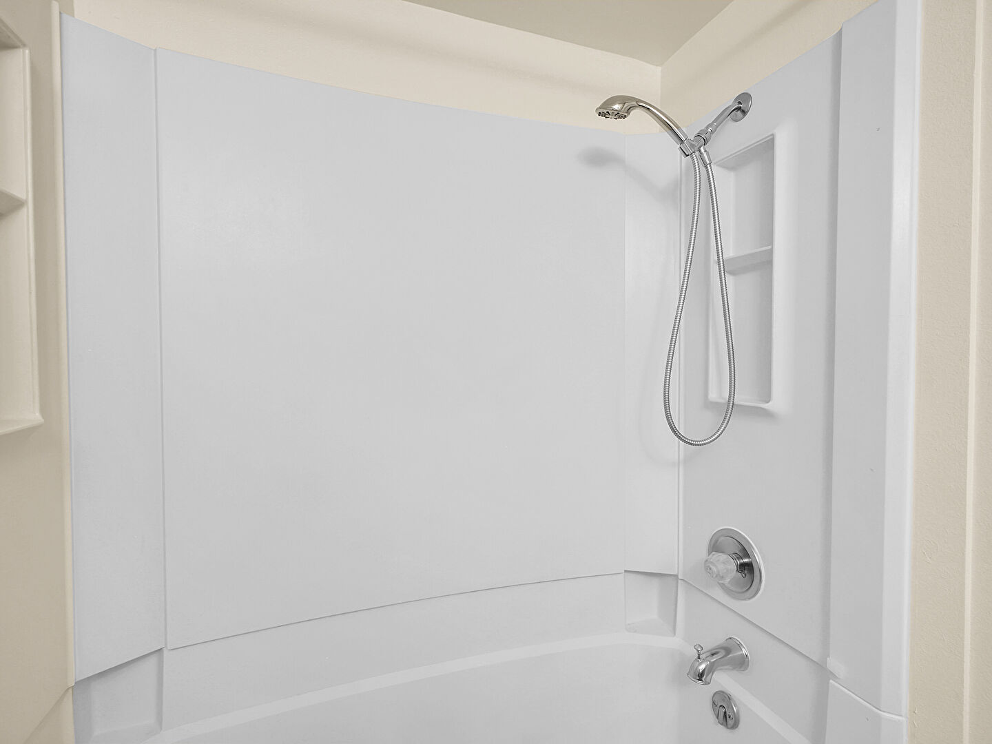 Baseboards Wall, Combined Bath Shower, Drywall, Full Bathroom, Drywall, Vanity