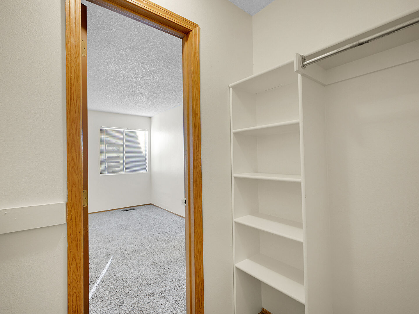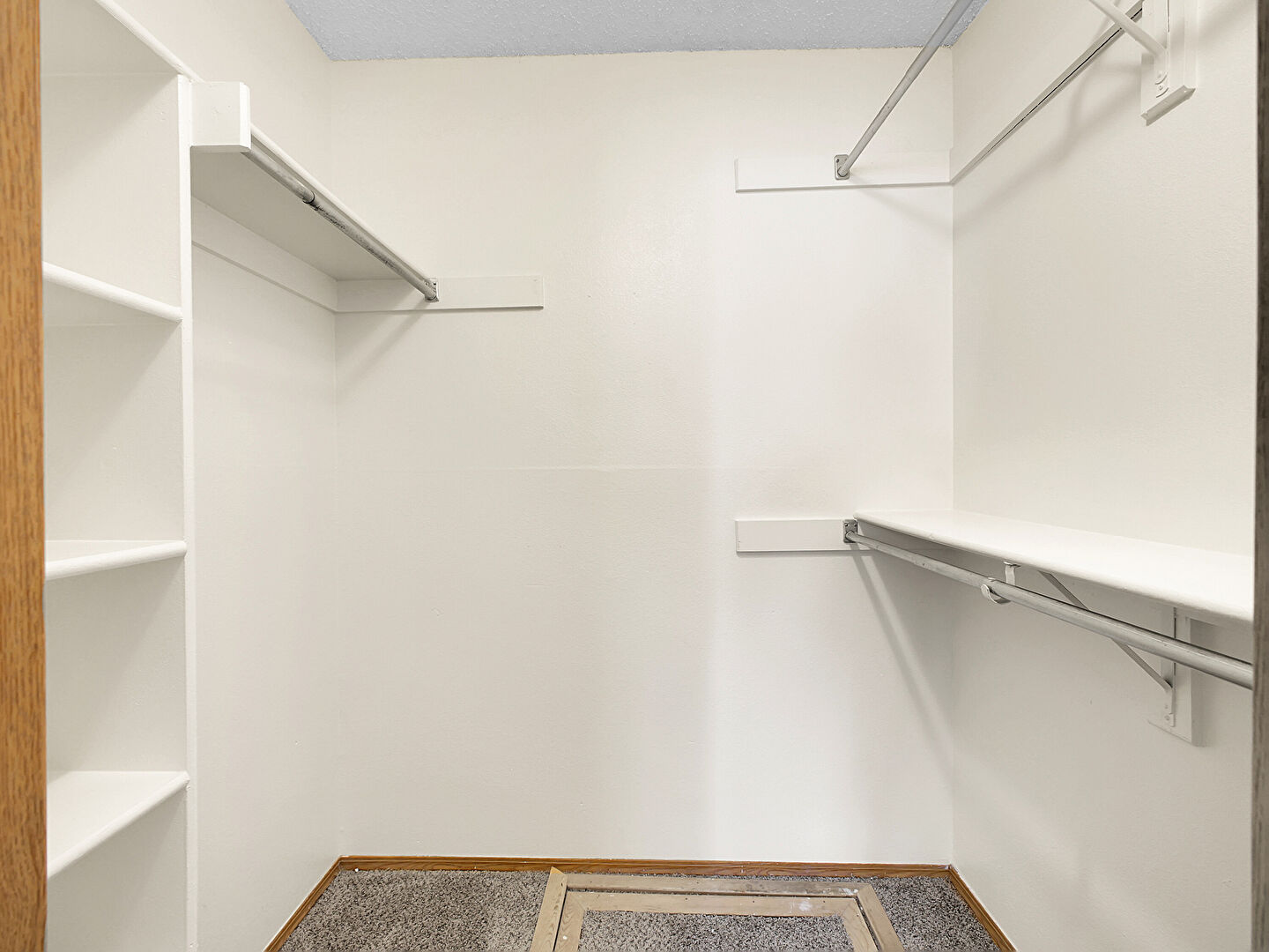 Baseboards Wall, Carpet, Textured Ceiling, Walk In Closet, Drywall