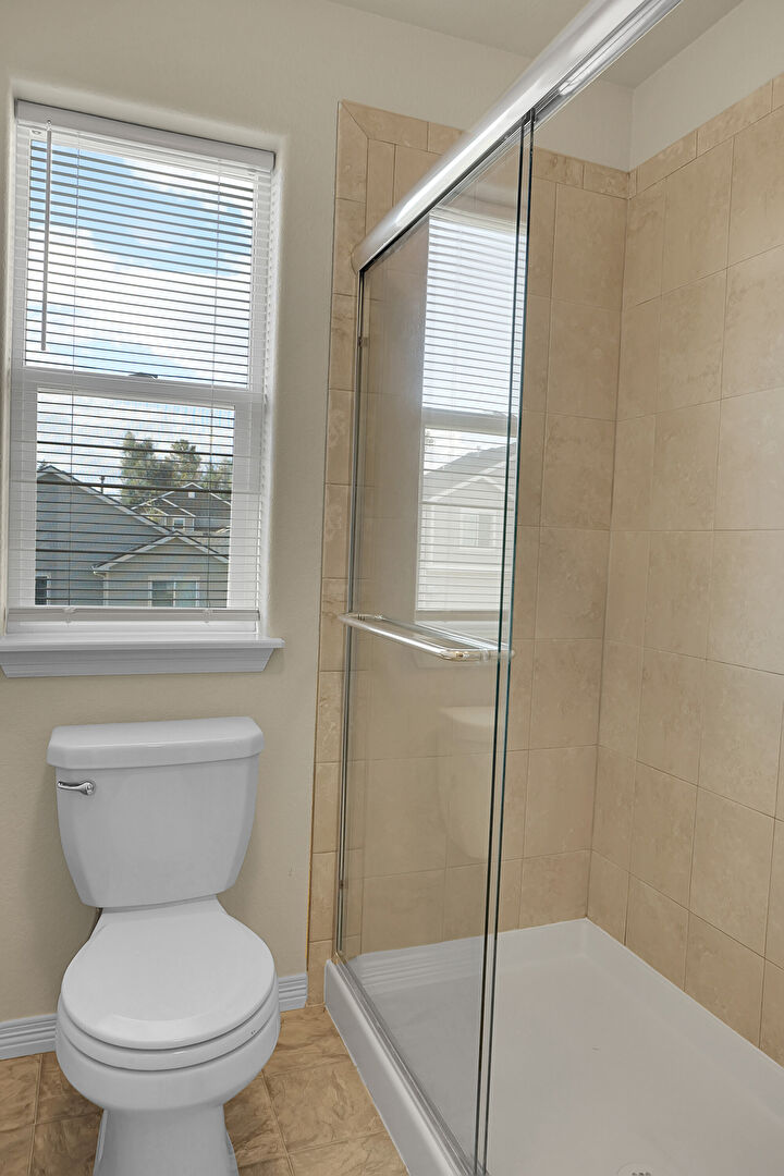 Baseboards Wall, Combined Bath Shower, Drywall, Full Bathroom, Natural Light, Tile Floor, Vanity, Baseboards Wall, Textured Wall, Vanity
