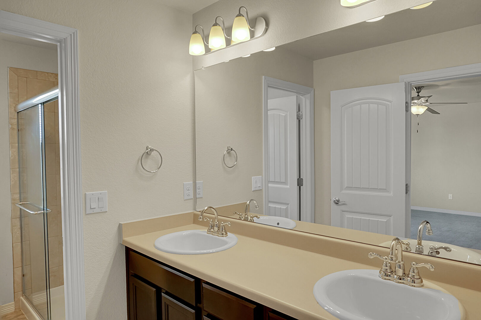 Baseboards Wall, Double Vanity, Drywall, Full Bathroom, Natural Light, Tile Floor, Walk In Closet, Baseboards Wall, Carpet, Ceiling Fan