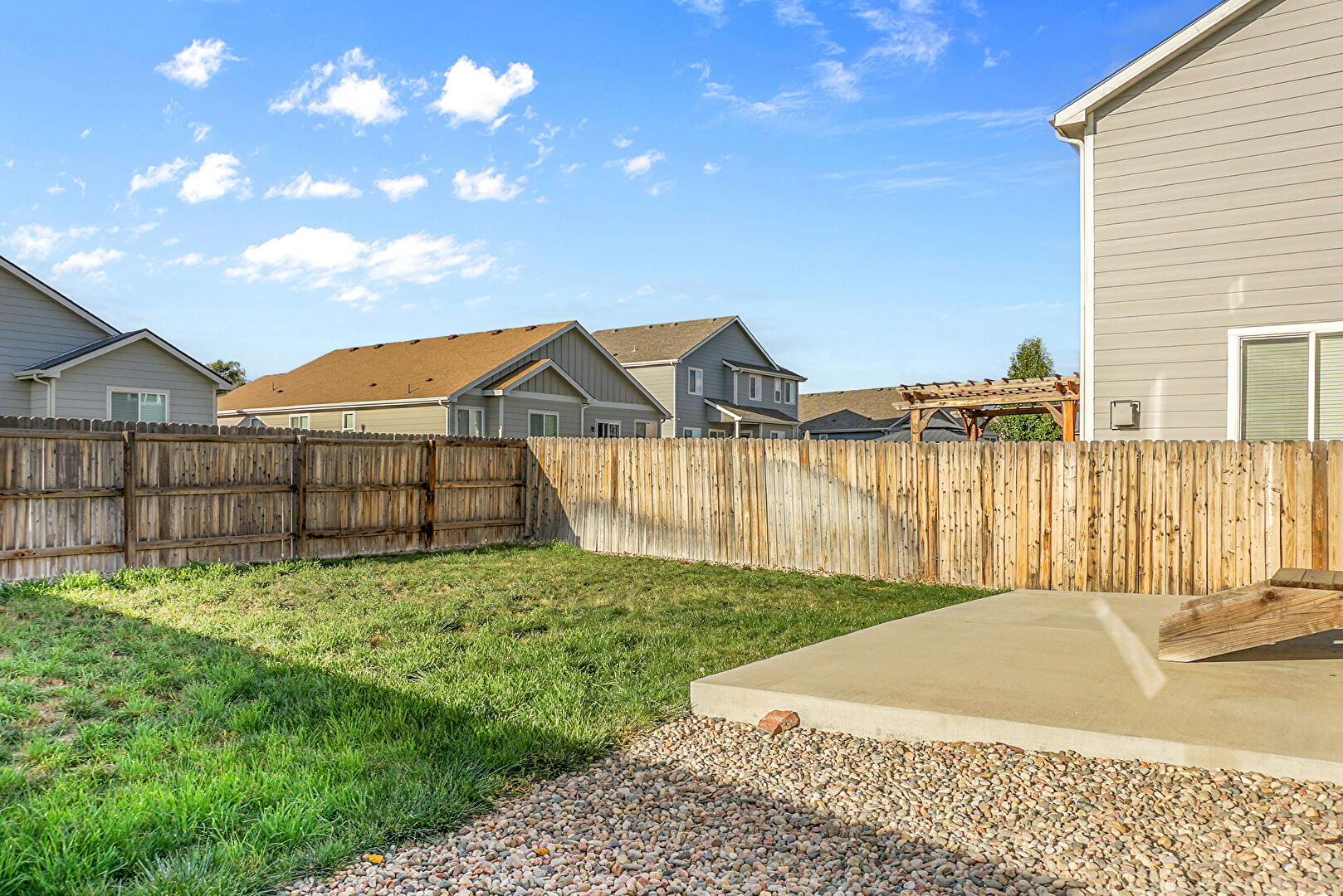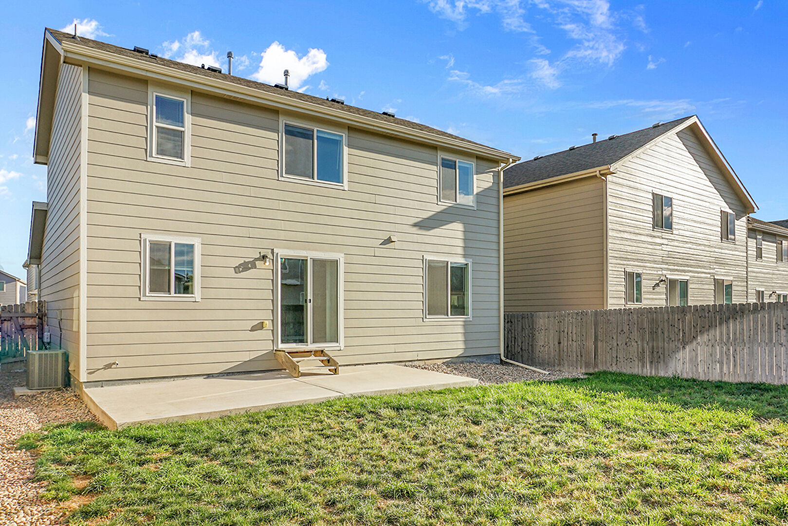 Central Ac, Concrete Foundation, Downspout, Entry Steps, Fence, Gutters, Horizontal Siding, Lawn, Patio, Gutters, Horizontal Siding, Patio