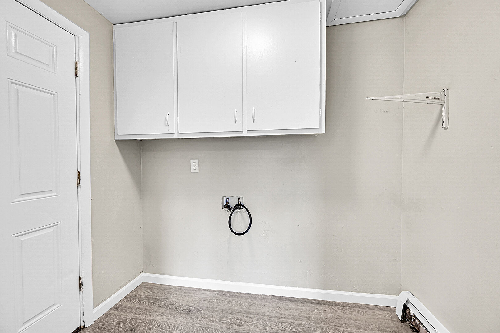 Baseboard Radiator, Drywall, Laundry, Washer Hookup, Wood Finish Floor, Baseboards Wall