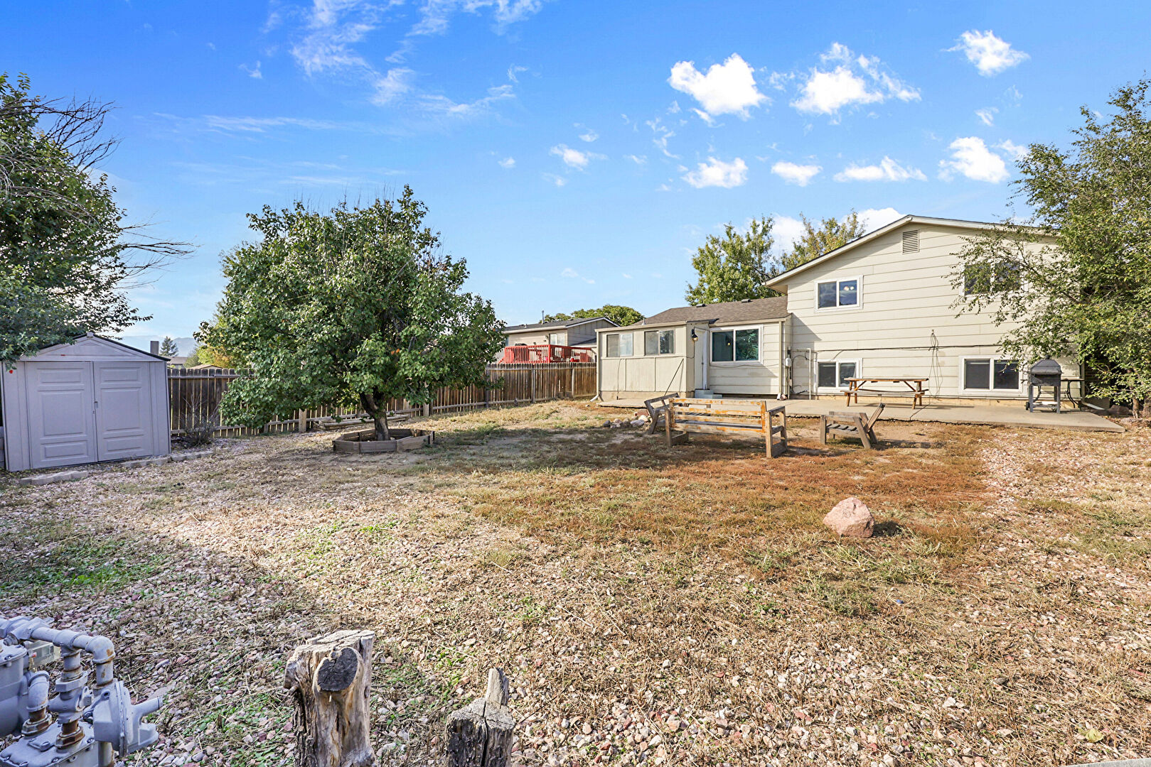 Fence, Gas Meter, Grill, Lawn, Outdoor Structure, Patio, Fence, Grill, Shed