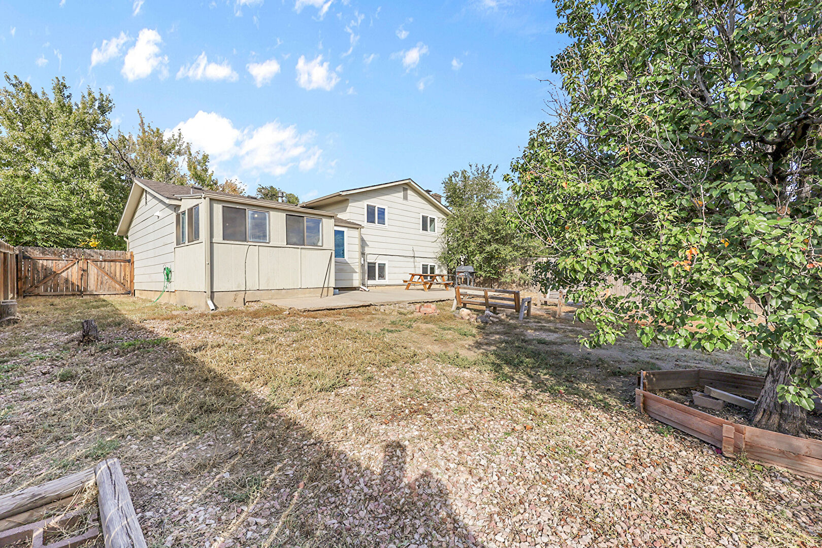 Concrete Foundation, Downspout, Fence, Garden, Gate, Grill, Gutters, Horizontal Siding, Lawn, Patio, Vertical Siding, Garden, Horizontal Siding