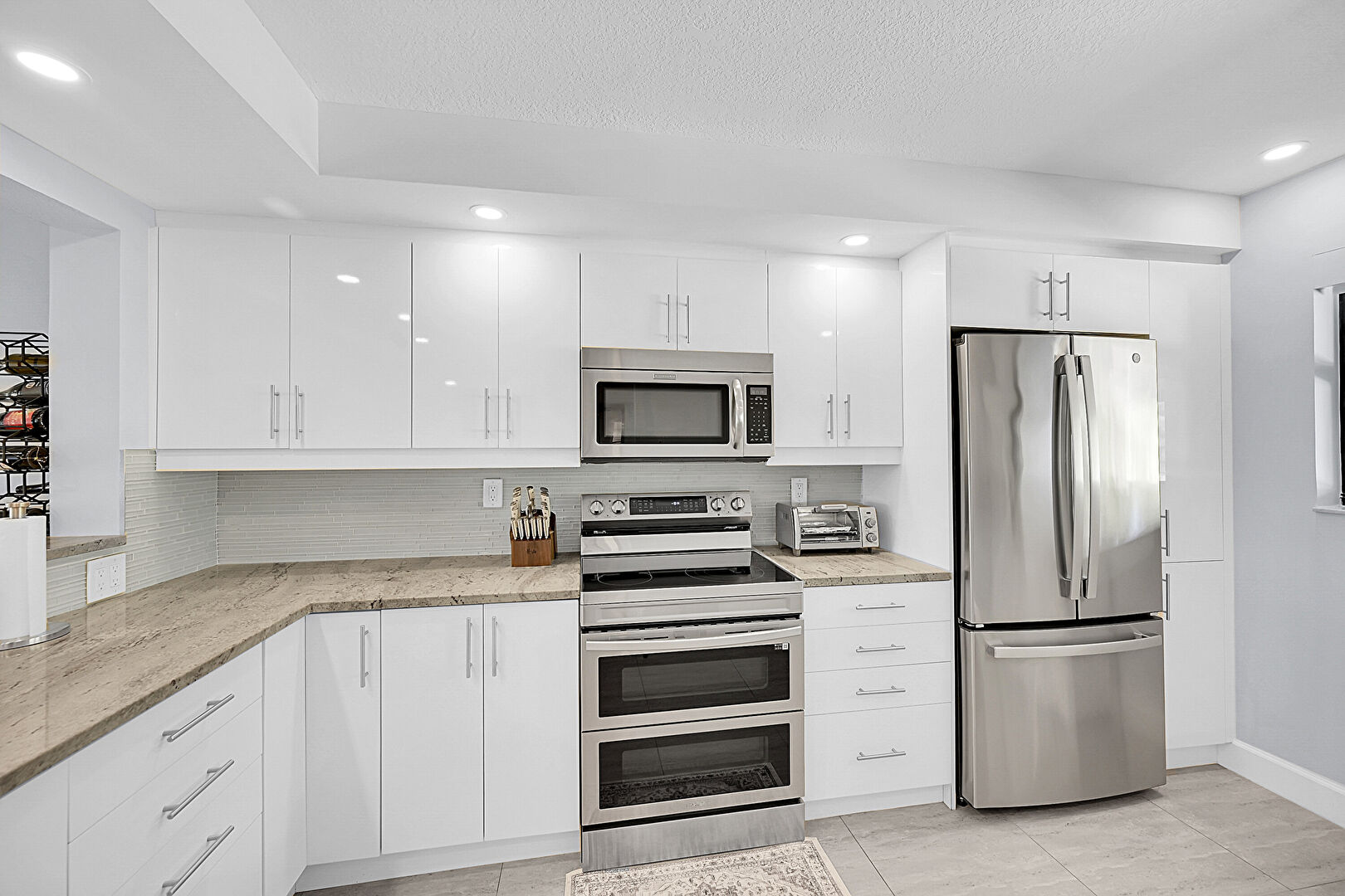 Baseboards Wall, Drywall, Flat Panel Cabinets, Kitchen Peninsula, Natural Light, Open Shelves, Opens To Living Area, Recessed Lighting, Shaker Cabinets, Stone Countertops, Textured Ceiling, Tile Floor, Toaster, U Shaped Kitchen, Vent, Wine Cooler, Drywall, Flat Panel Cabinets, Kitchen Bar, Natural Light, Recessed Lighting, Tray Ceiling