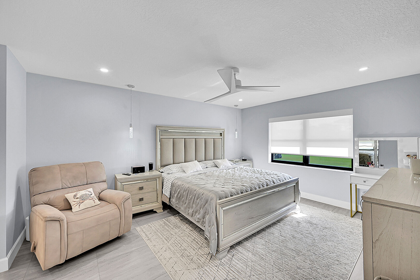 Baseboards Wall, Ceiling Fan, Drywall, Ensuite Bathroom, Natural Light, Recessed Lighting, Textured Ceiling, Wood Finish Floor, Baseboards Wall, Ceiling Fan