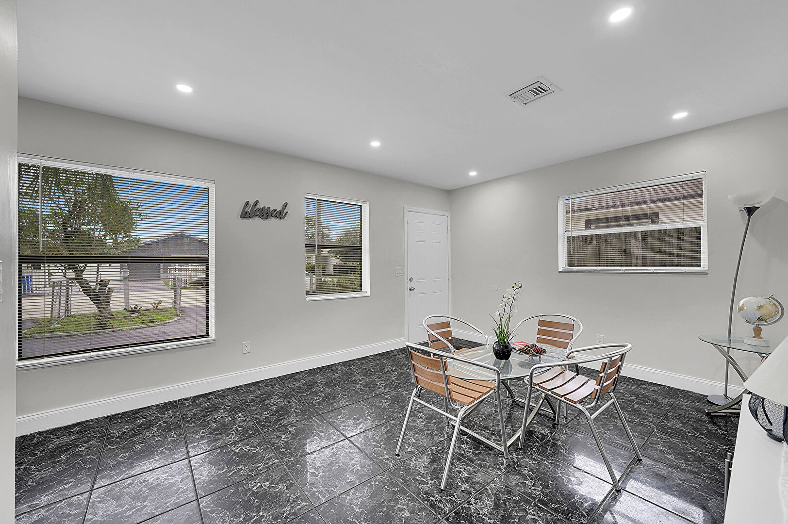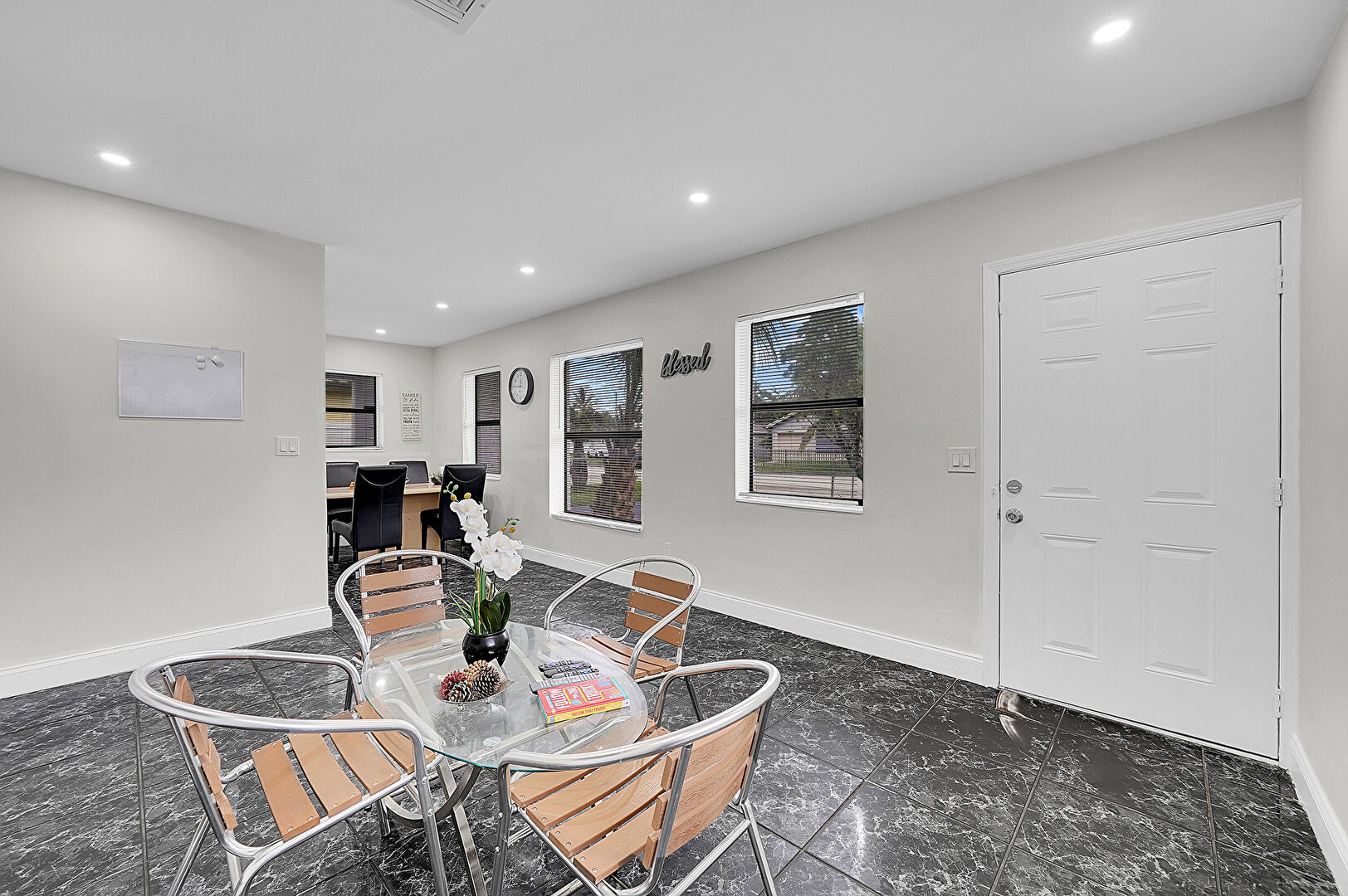 Baseboards Wall, Drywall, Natural Light, Office Area, Recessed Lighting, Tile Floor, Natural Light, Recessed Lighting, Vent