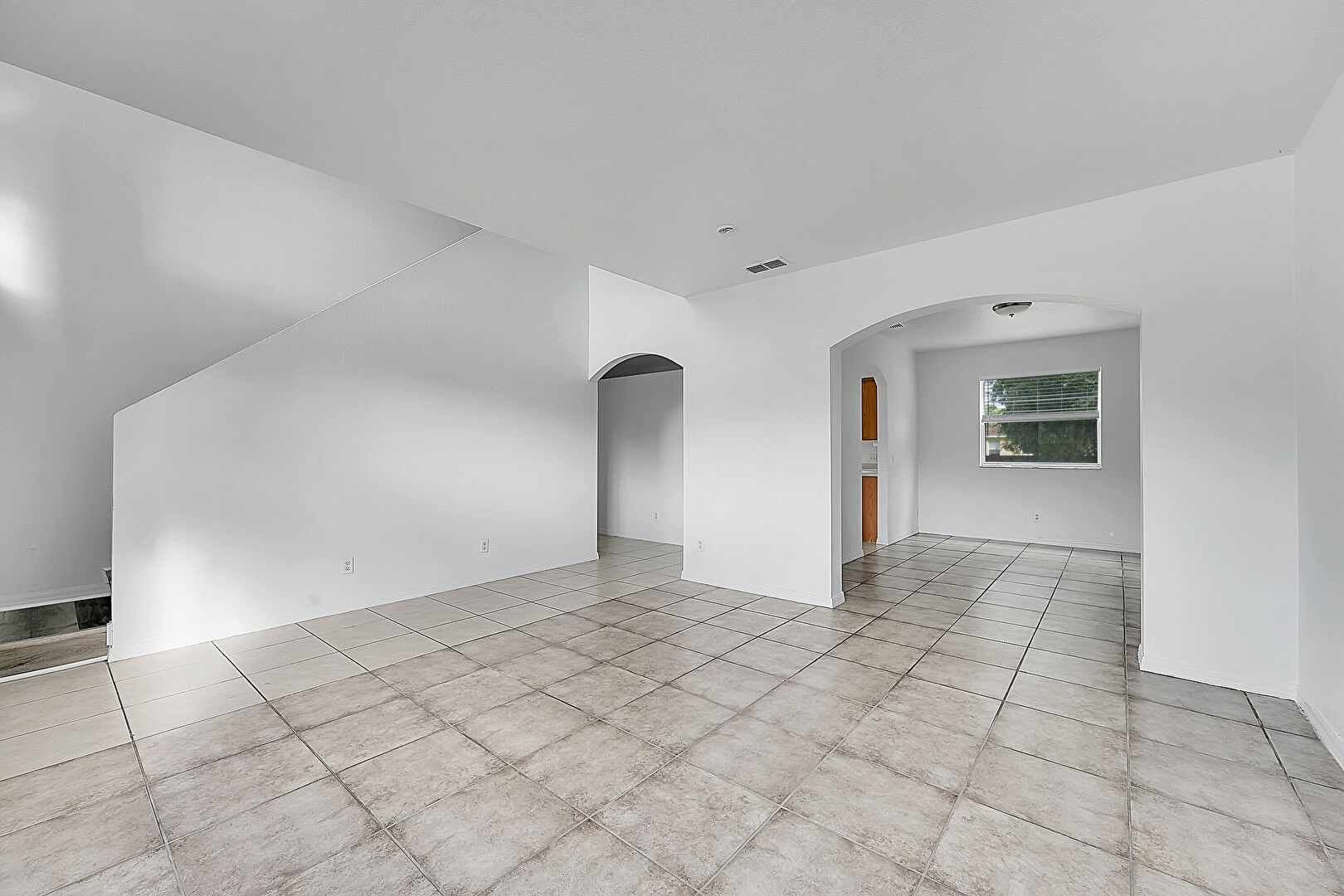 Arched Walkways, Baseboards Wall, Drywall, High Ceiling, Natural Light, Tile Floor, Vent, Drywall, High Ceiling
