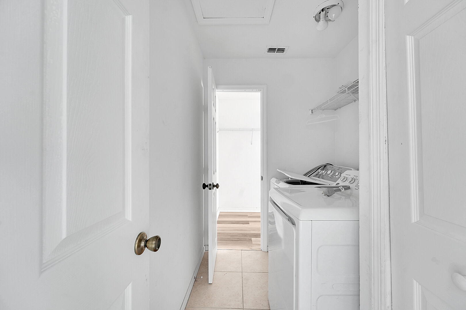 Drywall, Laundry, Tile Floor, Vent, Baseboards Wall