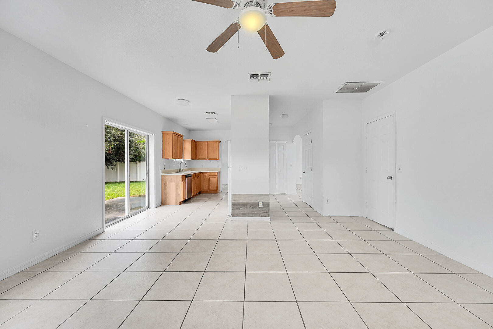 Baseboards Wall, Ceiling Fan, Drywall, L Shaped Kitchen, Natural Light, Tile Floor, Vent, Drywall, Natural Light