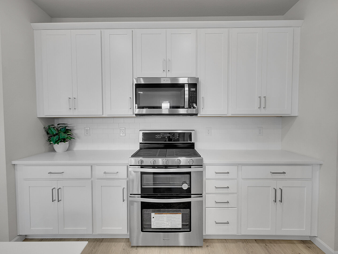 Baseboards Wall, Crown Molding Cabinets, Drywall, Kitchen Bar, Kitchen Island, Recessed Lighting, Shaker Cabinets, Stone Countertops, Vent, Wood Finish Floor, Baseboards Wall, Wood Finish Floor