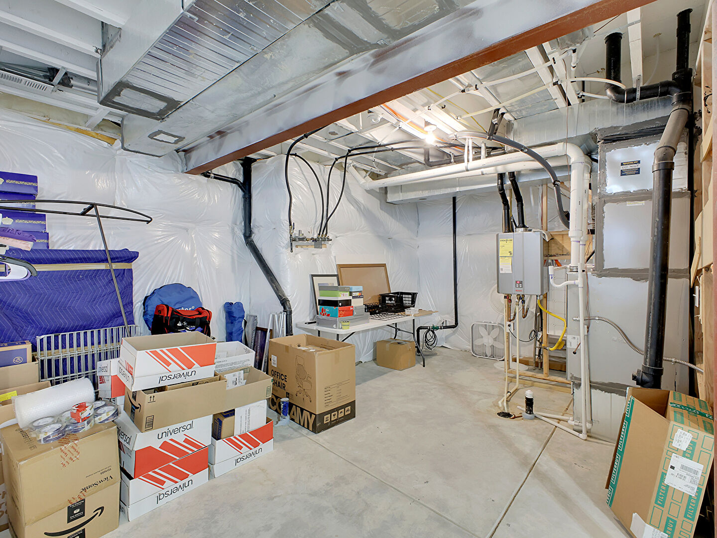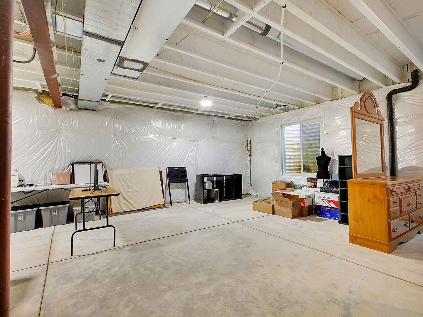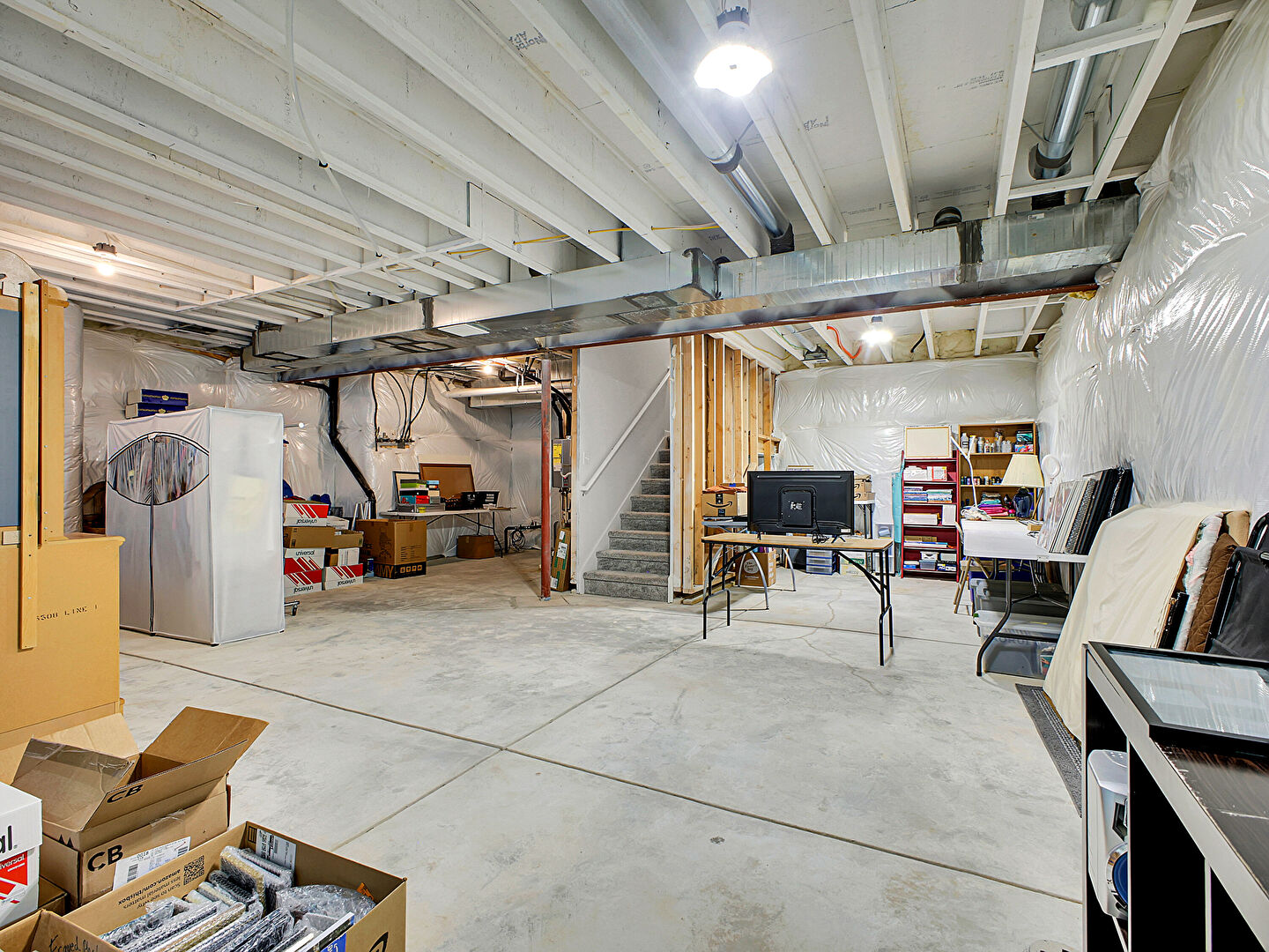 Basement, Furnace, Basement, Natural Light, Office Area, Stairs, Water Heater